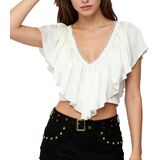 • استمتع بأسلوب بوهو مع هذا القميص القصير y2k الذي يتميز بحاشية مكشكشة وزخرفة من الدانتيل ورقبة على شكل حرف V وتصميم برباط خلفي. يضيف الظهر المفتوح لمسة أنيقة ستعشقها