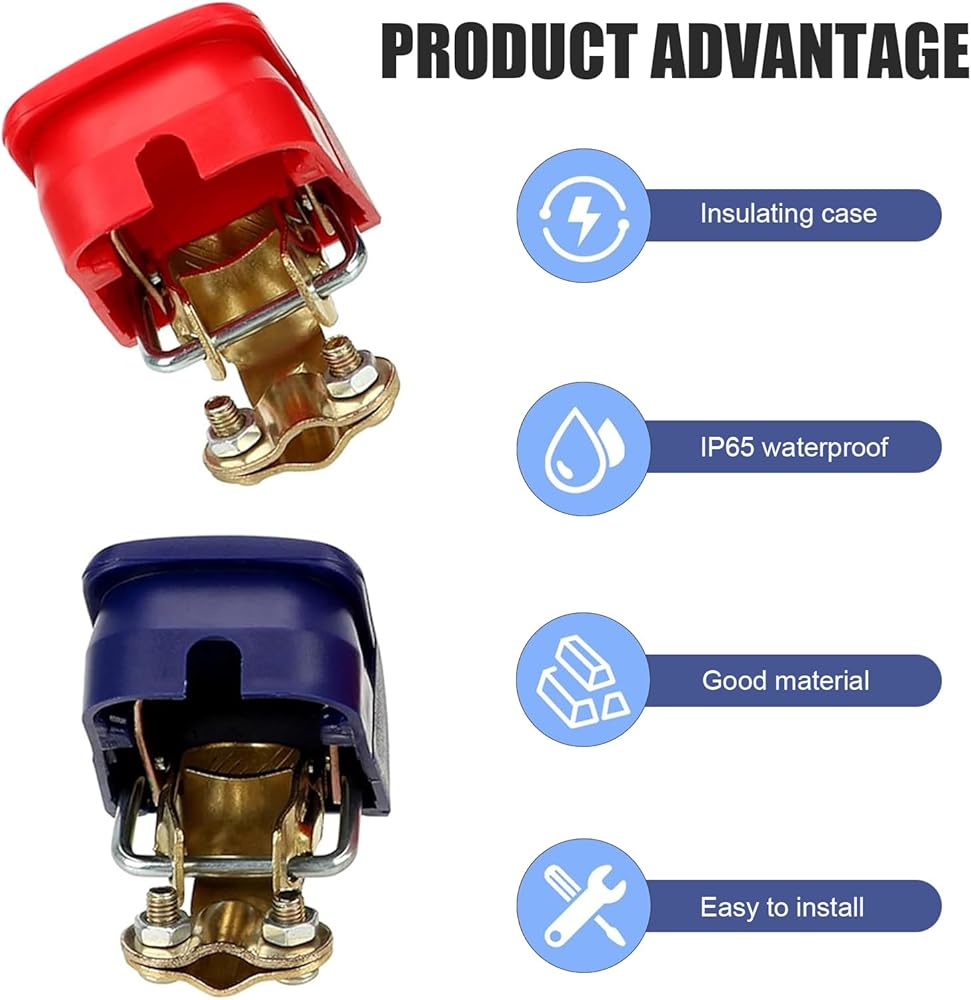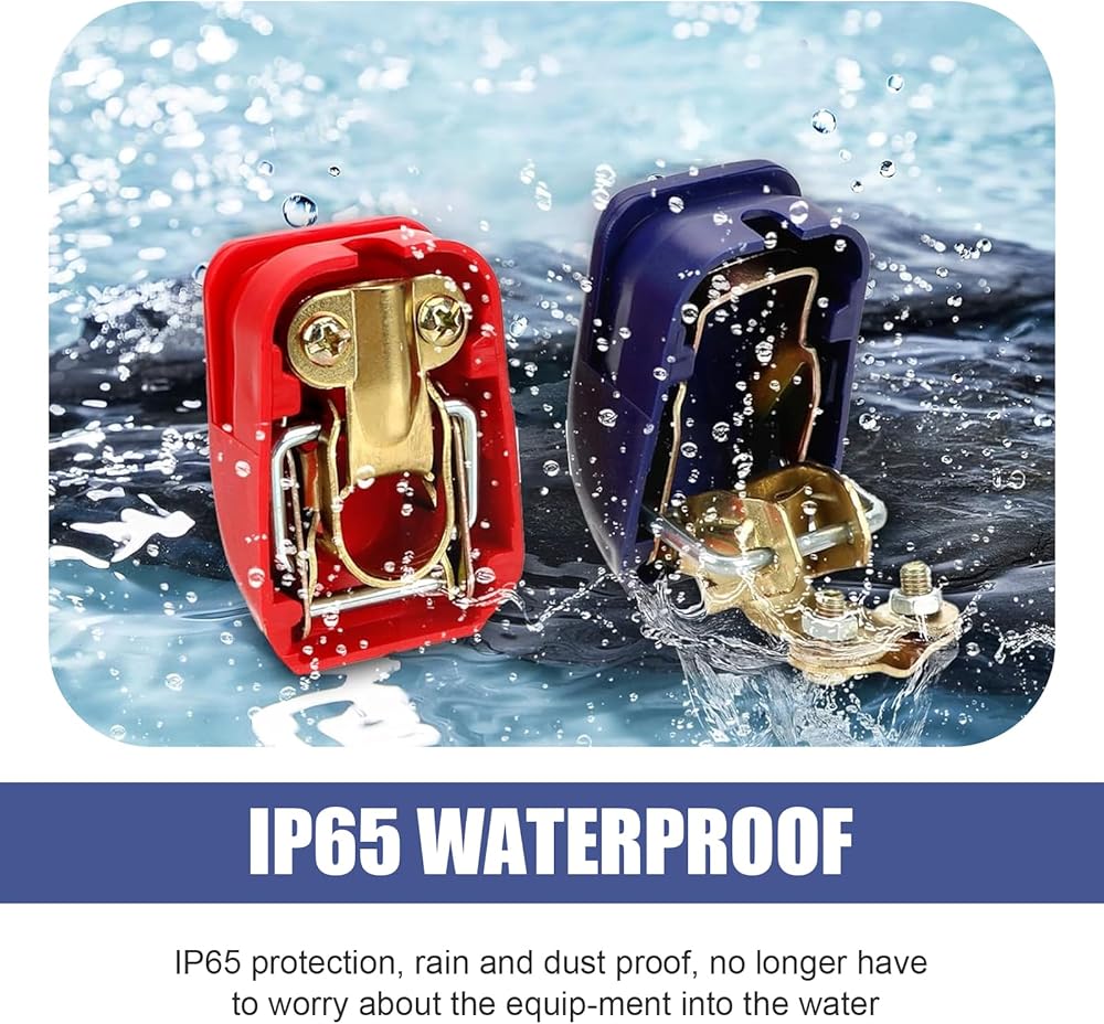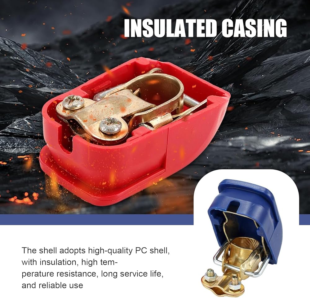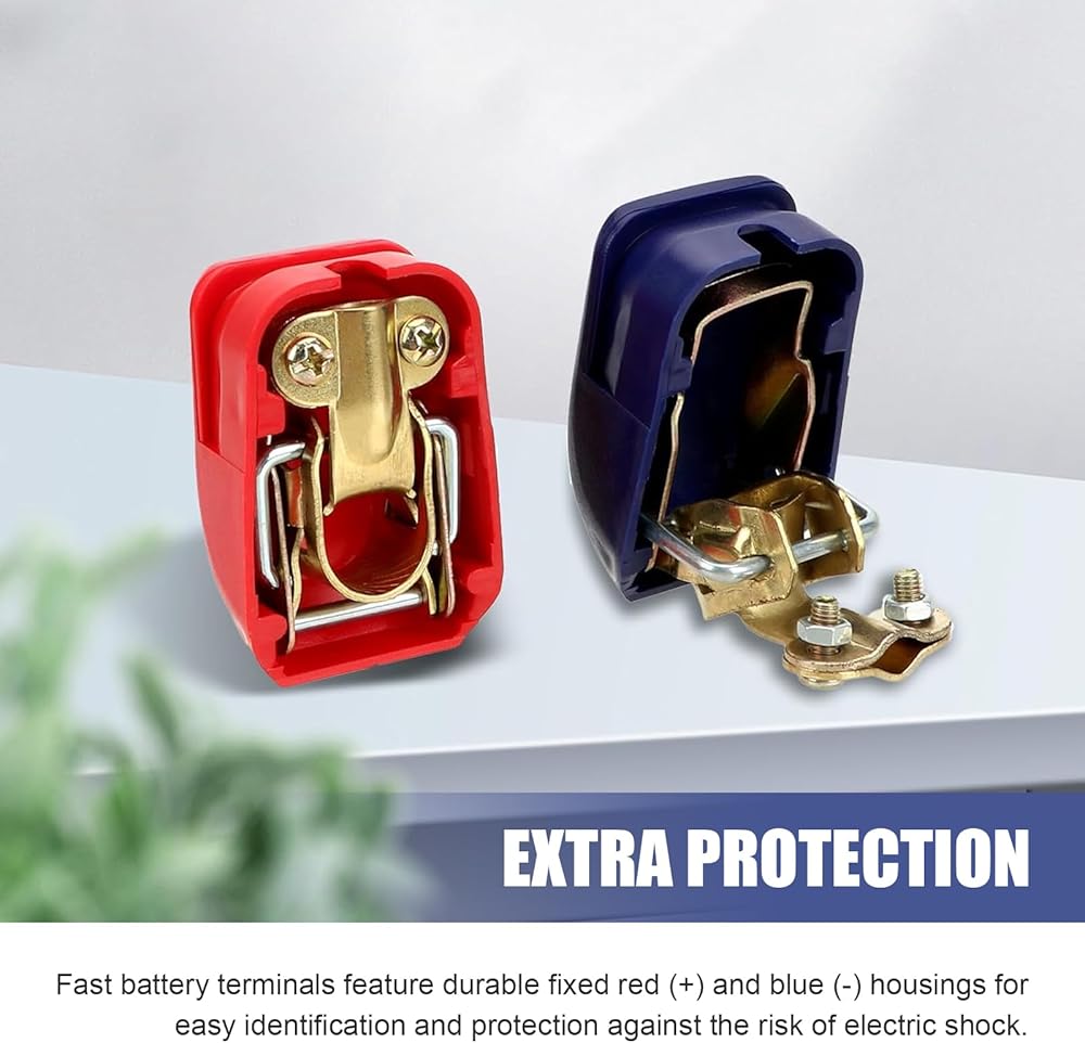 Safety Protection: Comes with durable red (+) and blue (-) protective covers, clearly marking positive and negative to prevent reverse connection. The rugged, wear-resistant covers also shield against dust, moisture, and accidental electrical shocks, enhancing overall safety.
