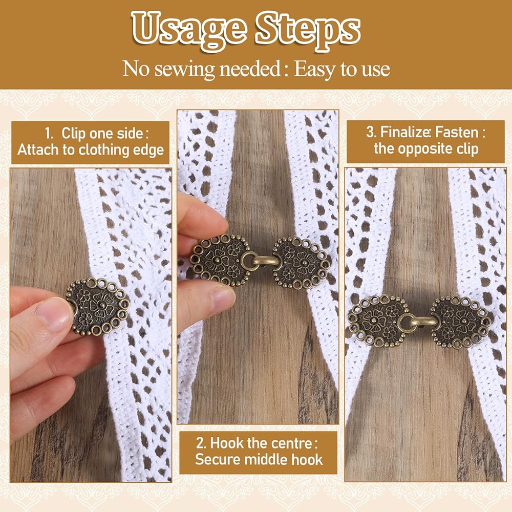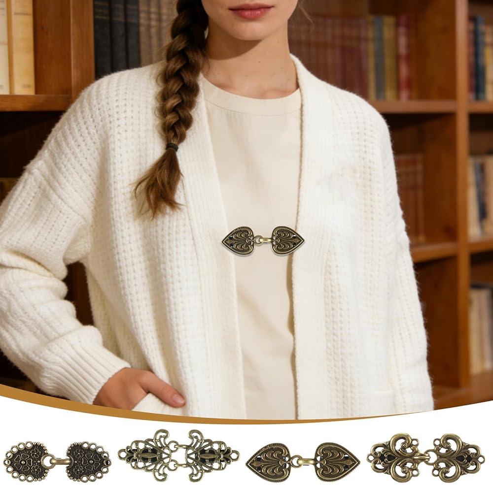 Four Retro Designs: Each set contains four antique bronze-colored sweater/shawl clips, each with a unique design and retro style. You can freely mix and match to suit your daily outfits, easily creating an elegant retro look.