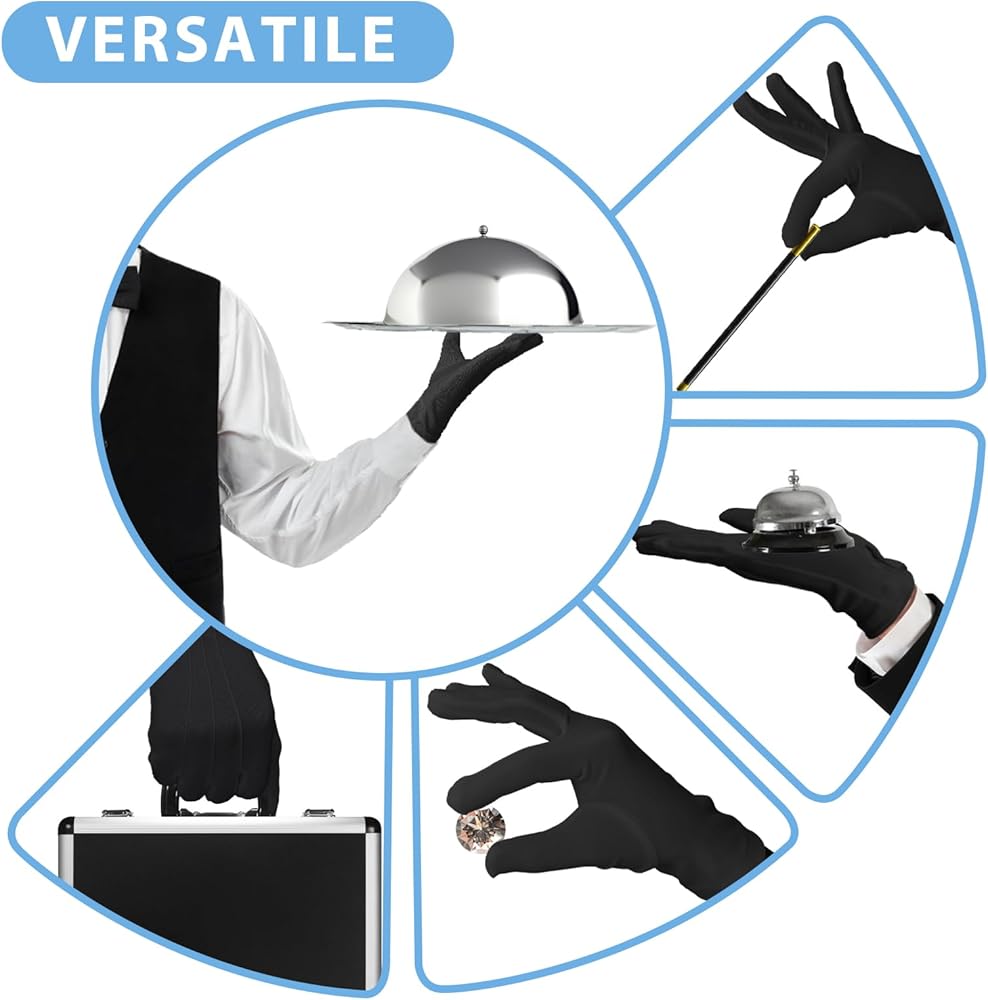 【مجموعة واسعة من التطبيقات】 أزياء الهالوين، تجعلك تبدو أنيقًا وساحرًا في الأزياء التنكرية ذات الطابع العام، والقفازات الموحدة مناسبة للأزياء التنكرية وحفلات الزفاف وحفلات الهالوين وكرات الرقص والمسارح والعروض أكثر، ويمكن أيضًا استخدامها لفحص تنظيف المنزل، المجوهرات أو الماس أو العتيقة