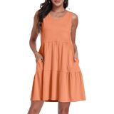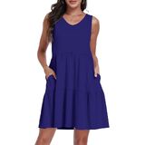 التصميم: تصميم فستان صيفي برقبة على شكل حرف V، بدون أكمام، فضفاض وتصميم تنورة بطبقات، والذي يمكن أن يوفر مظهرًا جذابًا وأنيقًا للأمهات المستقبليات؛ فستان الحمل بجيبين عمليين يسهل حمل الأشياء الصغيرة والمفاتيح والهواتف المحمولة عند الخروج