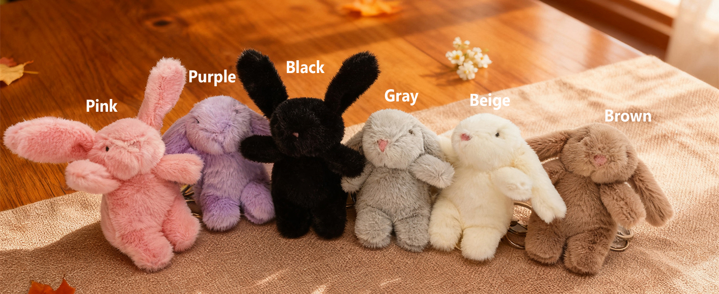 Removable Clasp & Key Ring: The rabbit keychain is a removable clasp and key ring. You can use the soft bunny keychain however you like.