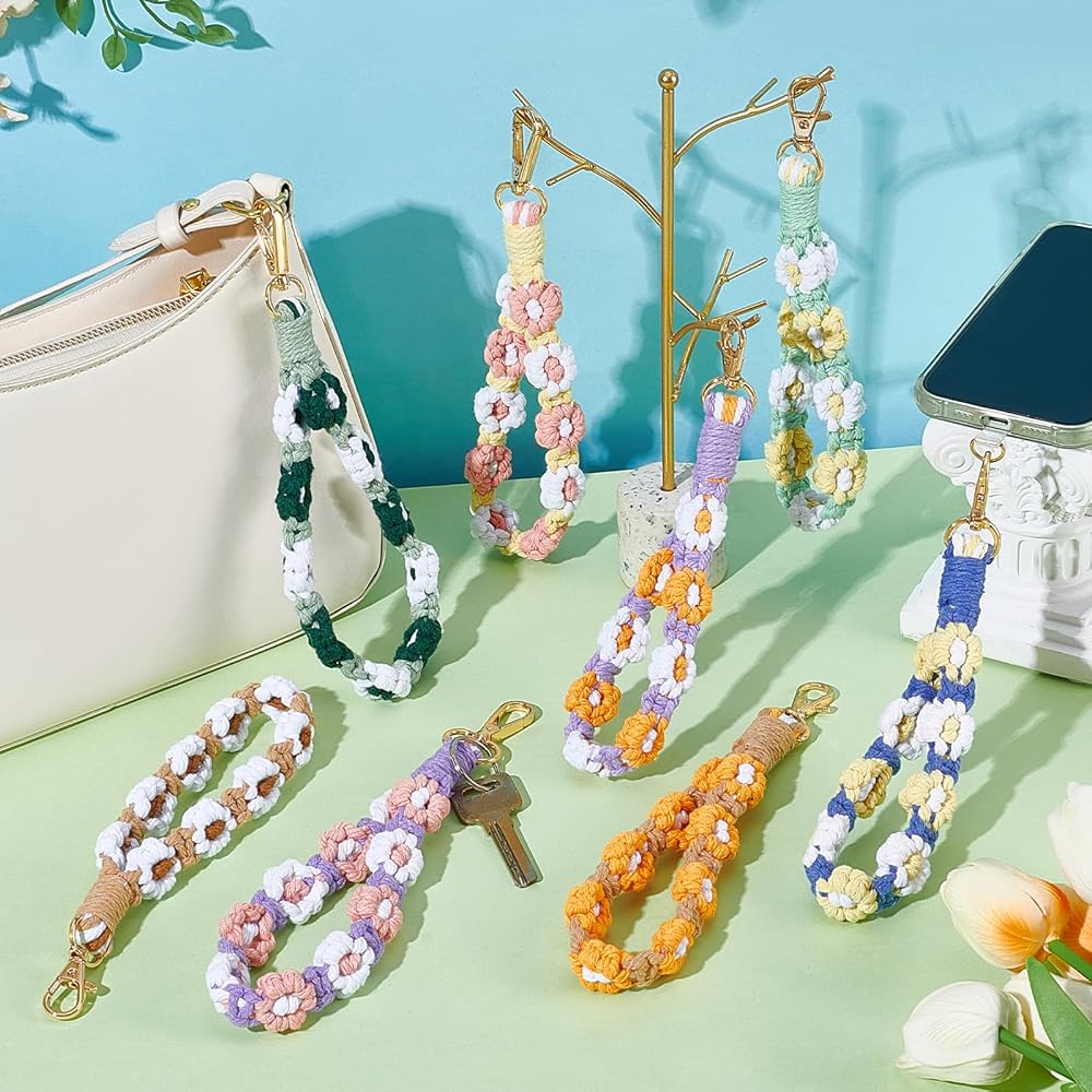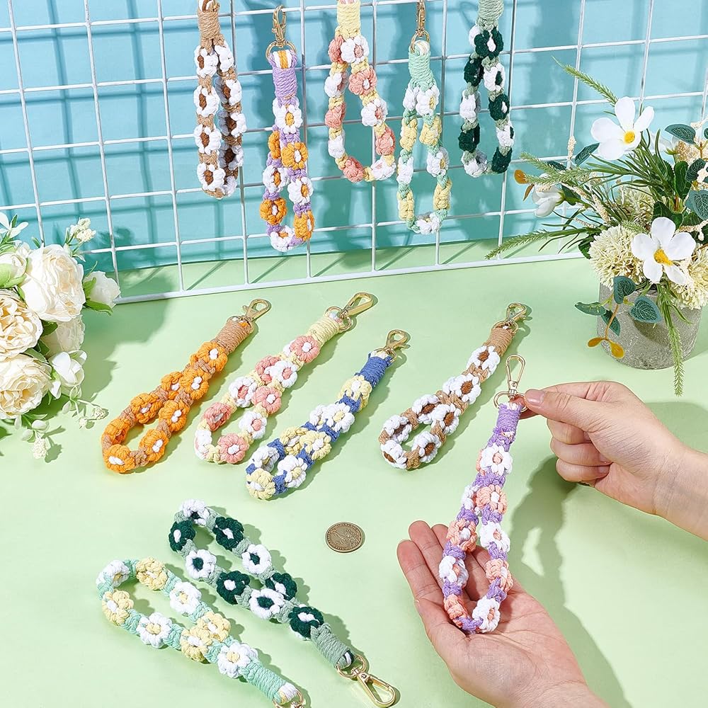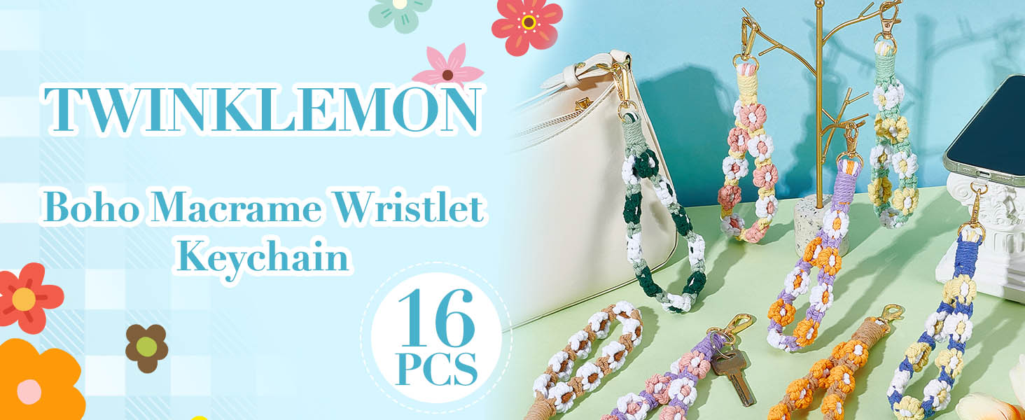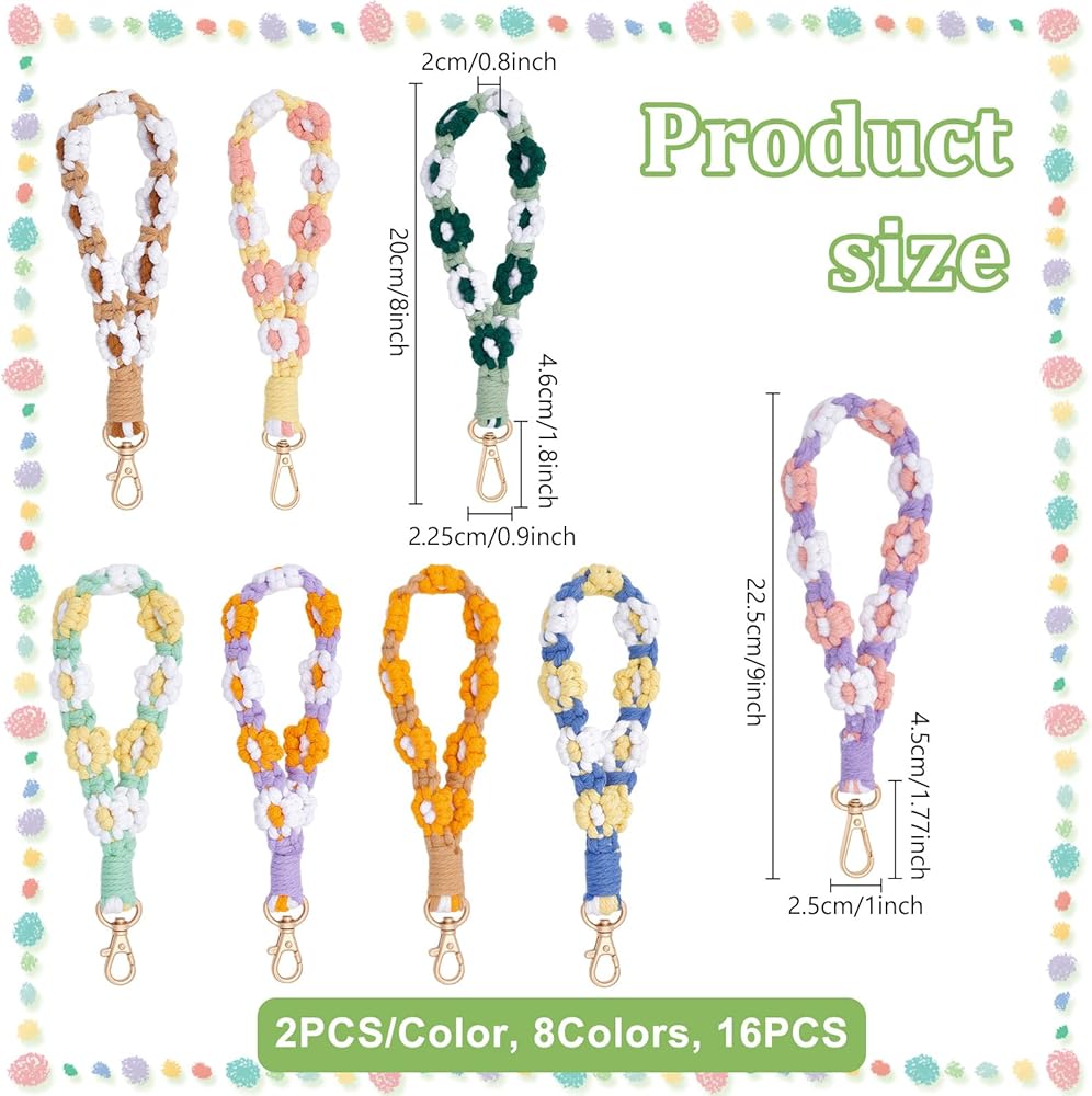 16 قطعة بوهو مكرميه السوار المفاتيح زهرة اليدوية المفاتيح السوار مفتاح سلسلة المعصم الحبل للمفاتيح لطيف ديزي كيرينغ للنساء
