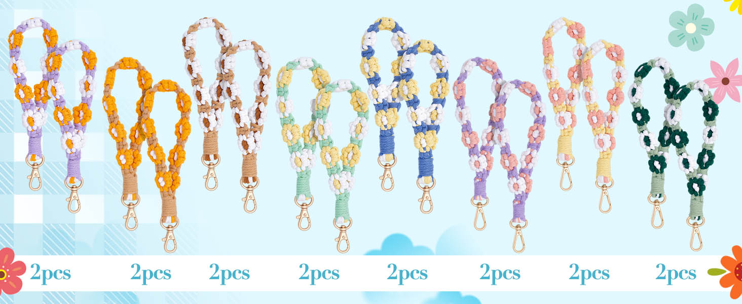 • 【8 أنماط】تحتوي هذه العبوة على 16 سلسلة مفاتيح على شكل زهرة مصنوعة يدويًا، وتتميز بـ 8 تصميمات مميزة مع قطعتين من كل طراز. تتميز حلقة المفاتيح هذه المصنوعة يدويًا بلوحة ألوان منعشة ومهدئة. يمكن ارتداؤها كأساور للمعصم أو ربطها بالحقائب والملابس كإكسسوارات زخرفية