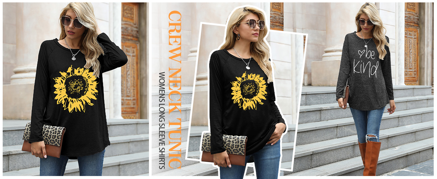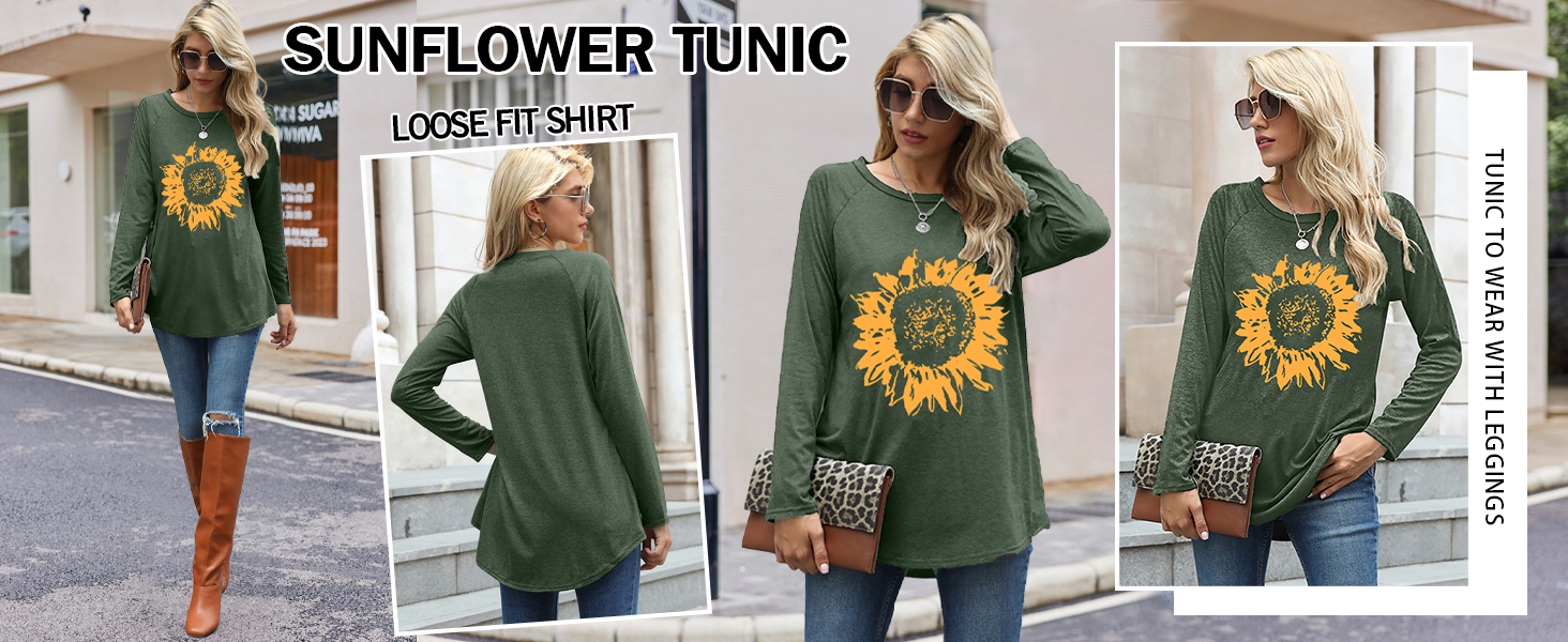 • Feature:This is a womens tunic has beautiful sunflower graphic and letter print graphic.Casual and loose fit ,give you comfortable autumn and winter wear experience