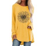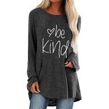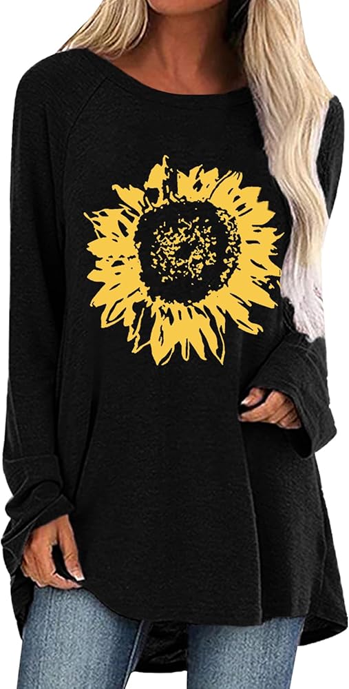 Product Description Women's Tunic Tops Casual Long Sleeve Oversize Graphic Shirt Material:Soft and Breathable Neckline:Crew Neck Sleeve:long sleeve Design: sunflower,printed,rainbow,good vibes,kindness,long,letter print Hem: irregular hem,asymmetrical hem. Season:All year around Great for every day, looks elegant and casual in formal. Perfect for casual daily, party, work, vacation, homecoming in autumn winter and springSize Chart S---Chest---36.6inch---Center back length---30.3 inch---Sleeve---26.4inch M--Chest--- 39.0inch---Center back length---30.7 inch---Sleeve---26.8inch L---Chest--- 41.3inch---Center back length---31.1 inch---Sleeve---27.2inch XL---Chest--- 44.5inch---Center back length---31.5inch---Sleeve---27.6inch XXL---Chest--- 47.6inch---Center back length--- 31.9inch---Sleeve---28.0inch
