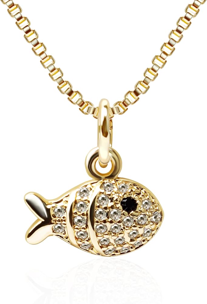 قلادة ذهبية أنيقة للنساء، قلادة قلادة مكعبة زركونيا مطلية بالذهب عيار 14 قيراط، قلادة قلادة على شكل سلحفاة بحرية على شكل سمكة لذيذة، قلادة على شاطئ المحيط، قلادات مجوهرات ذهبية عصرية لطيفة للنساء هدية