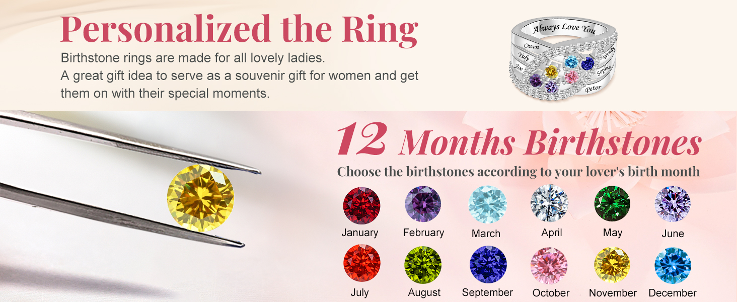 ❤[خواتم حجر الميلاد للنساء] يعد خاتم الأسماء الشخصية هذا هدية رائعة لأمك، وجدتك، زوجتك، أختك، صديقتك، صديقتك المفضلة، خطيبتك وغيرها من النساء اللاتي تحبينه في أعياد الميلاد، وعيد الأم، والتخرج، والذكرى السنوية، وحفلات الزفاف، والكريسماس، وعيد الحب.