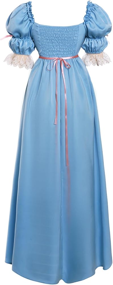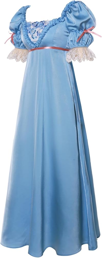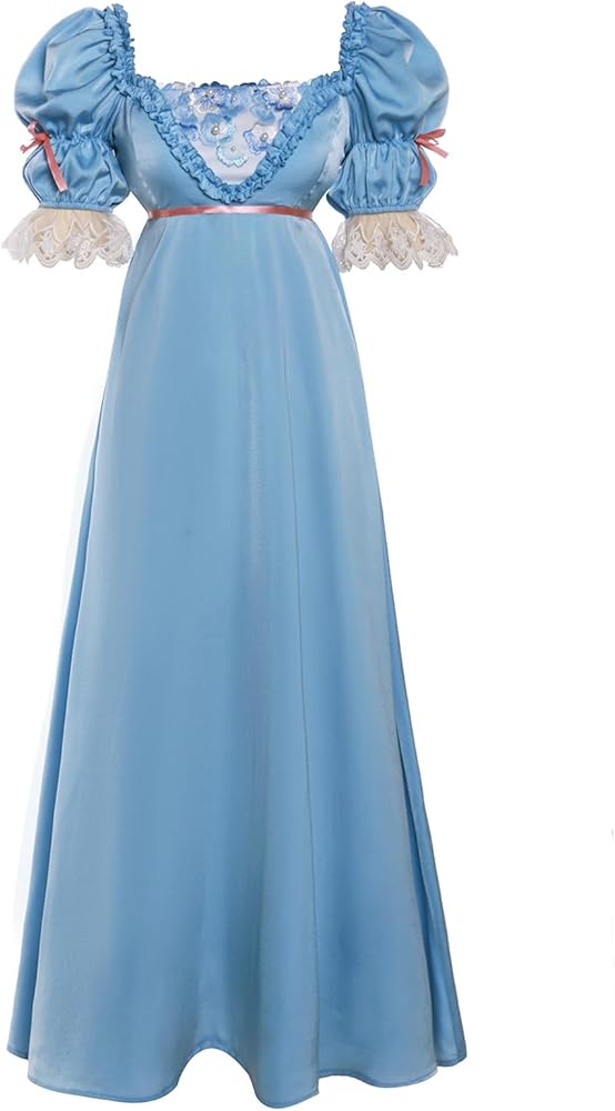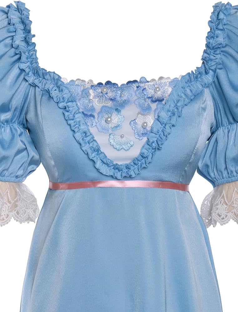 ميزات التصميم - يجسد هذا الفستان ذو الخصر الإمبراطوري سحر فترة ريجنسي بأكمام منتفخة وأساور دانتيل رقيقة وخط عنق مطرز بالزهور. قصة خصر إمبراطوري وشريط وردي لحزام لإظهار شخصيتك.