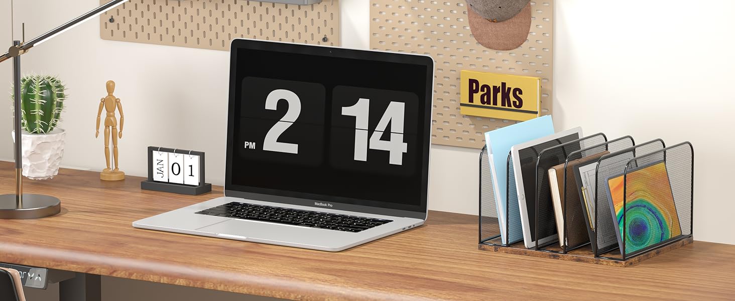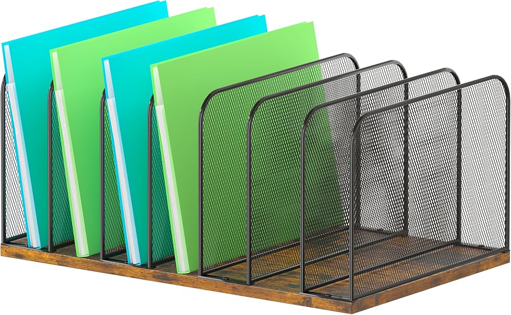 • 【سهلة التنظيم】 يحتوي منظم الملفات الرأسي هذا على 5 مساحات واسعة توفر مساحة تخزين واسعة للملفات والمجلات وأساسيات سطح المكتب، ويناسب معظم المكاتب دون شغل مساحة كبيرة.