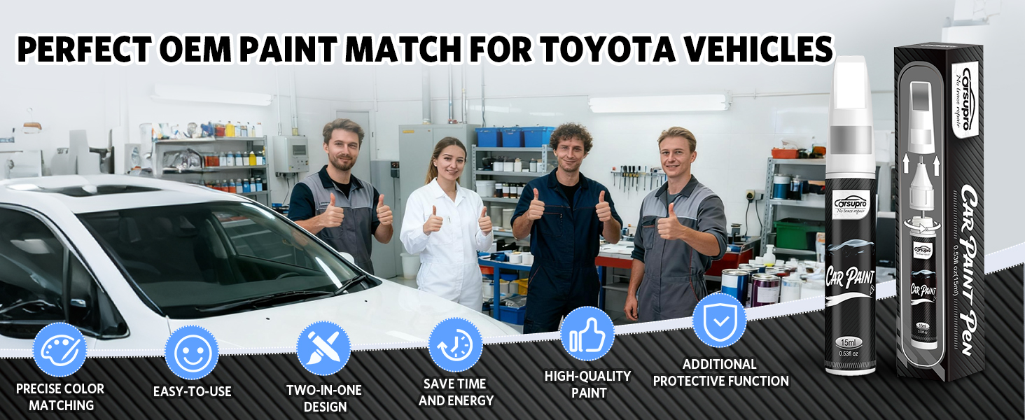 【لون مطابق تمامًا لتويوتا】مصمم خصيصًا لمركبات تويوتا. يمكن أن يكون لون Attitude/Midnight Black Metallic (218) مطابقًا جيدًا لـ C-HR/Corolla/Corolla Cross/Corolla iM/Highlander/Highlander-models/Land Cruiser/Mirai/PHV/Prius/Prius C/Prius Prime/Prius V/RAV4/Rush/Sequoia/Sienna/Sienna-models/Supra/Tacoma/Tundra/Venza/Yaris/Yaris iA. يوفر قلم الطلاء الذي يعمل باللمس إصلاحًا سلسًا وهو مثالي لإصلاح رقائق الطلاء والخدوش