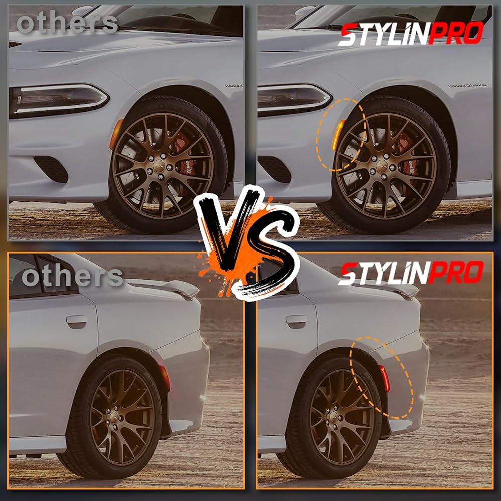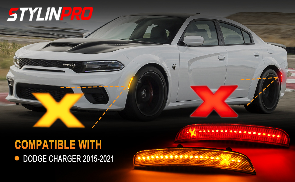 [متوافق]-تتوافق مصابيح التحديد الجانبية StylinPro XStyle مع شاحن دودج 2015-2021. رقم جزء OEM الأمامي: 68214404AA، 68214405AA. رقم جزء OEM الخلفي: 68214126AA، 68214127AA.