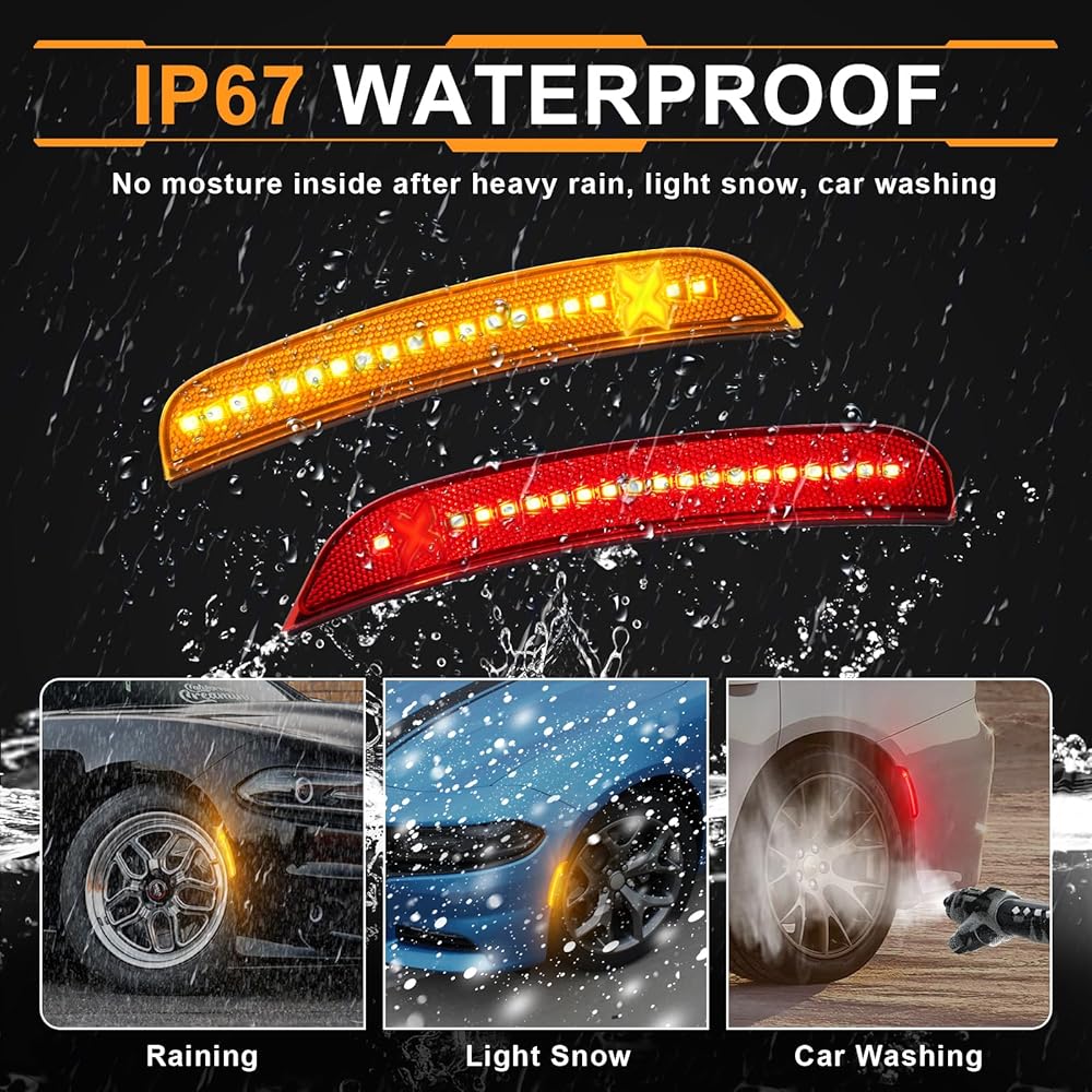 [جودة عالية]-IP67 مقاوم للماء ومصمم بالكامل. عدسة مصابيح دودج تشارجر مصد الصدمات الجانبية 2015-2021 مصنوعة من مواد البولي كربونات، ولا تبهت مع التعرض لفترة طويلة.