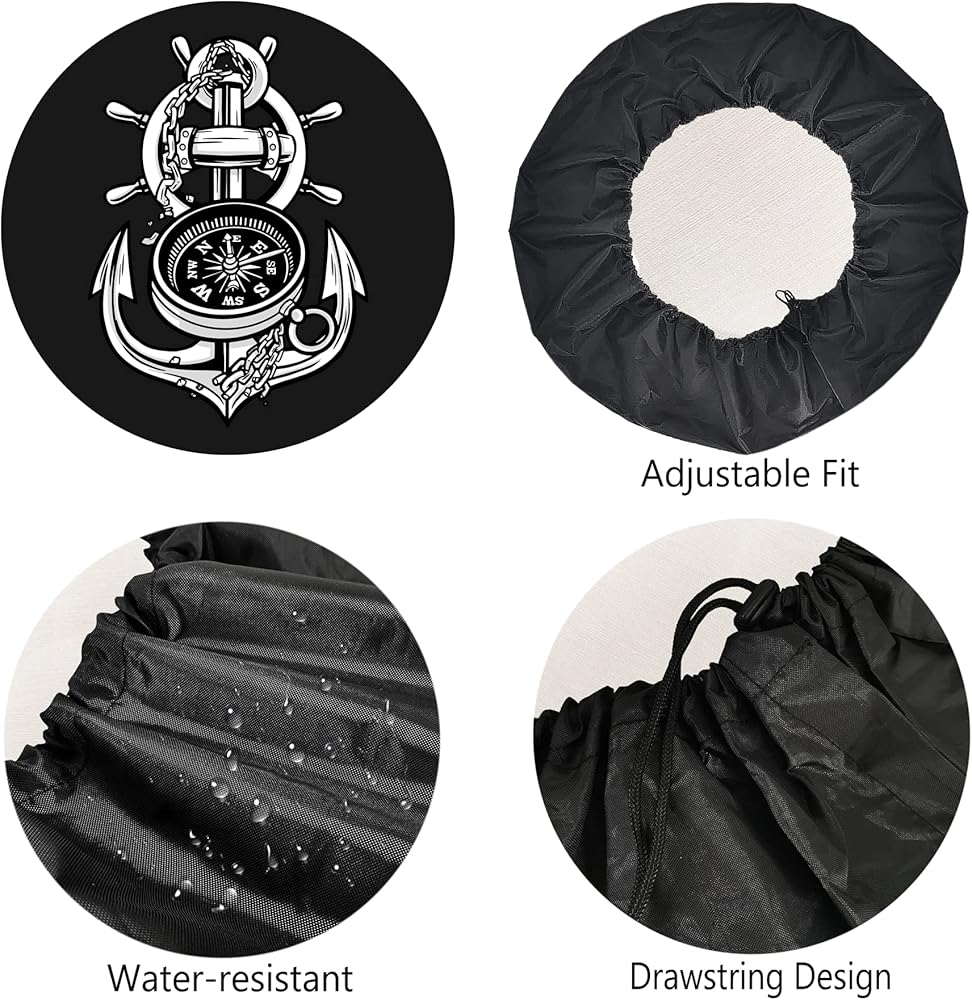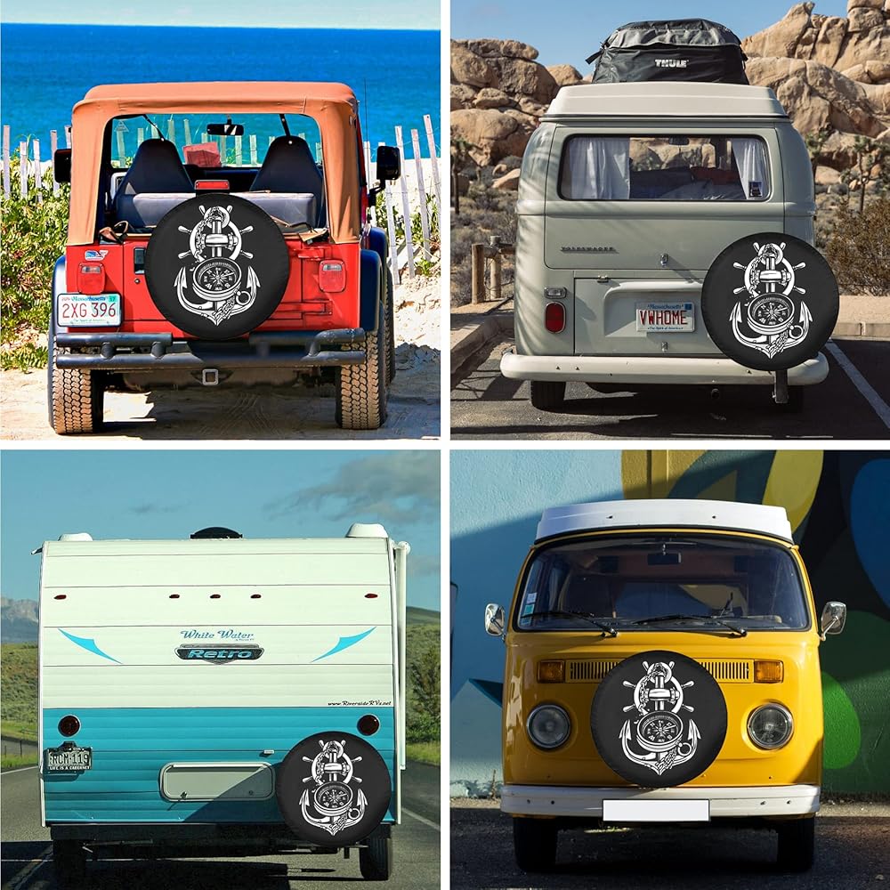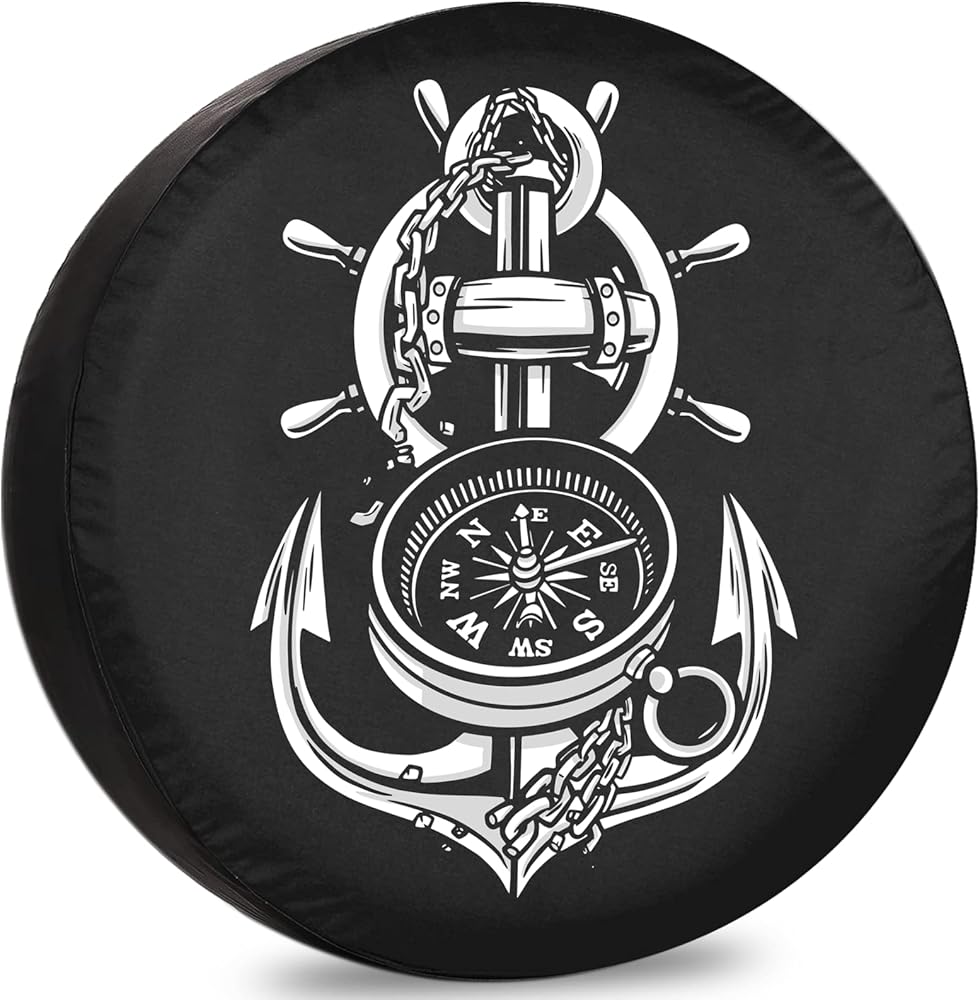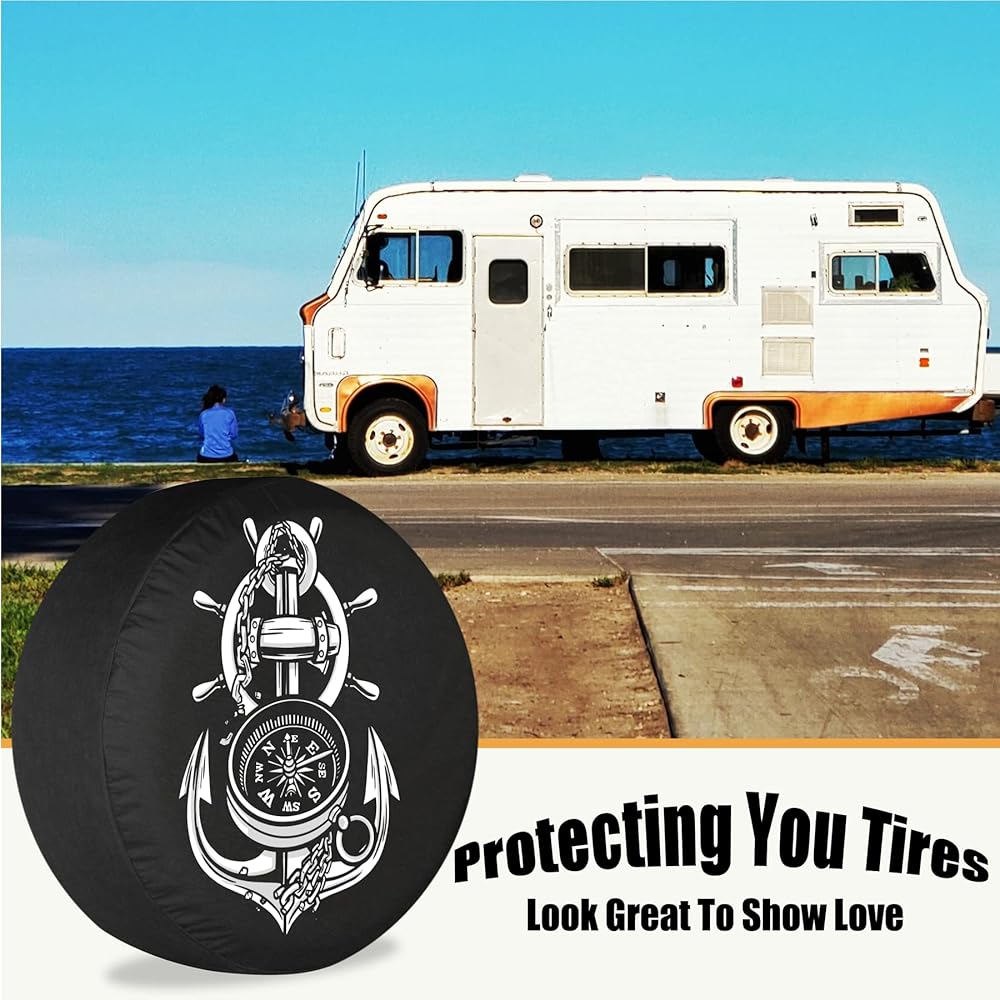 غطاء إطار احتياطي للمقطورة مرساة رائعة وبوصلة أغطية إطارات RV للإطارات القابلة للقطر مقاومة للطقس والغبار عالمية لسيارات الدفع الرباعي والمخيمات ومركبات السفر 12 بوصة 13 بوصة 14 بوصة 15 بوصة 16 بوصة 17 بوصة