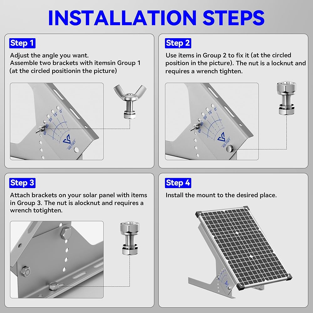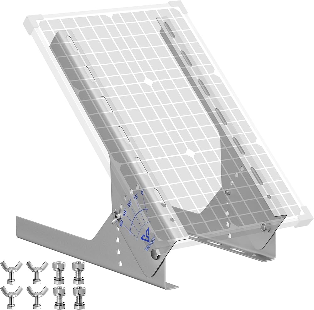 حامل تثبيت اللوحة الشمسية Voltset: دعامة زاوية قابلة للتعديل من الفولاذ الخالد مقاس 13.8 بوصة - قضبان تثبيت على الرف مع الأجهزة، متوافقة مع التركيب ضمن لوحة شمسية 200 وات للجدار والسقف والمركبات الترفيهية والقارب