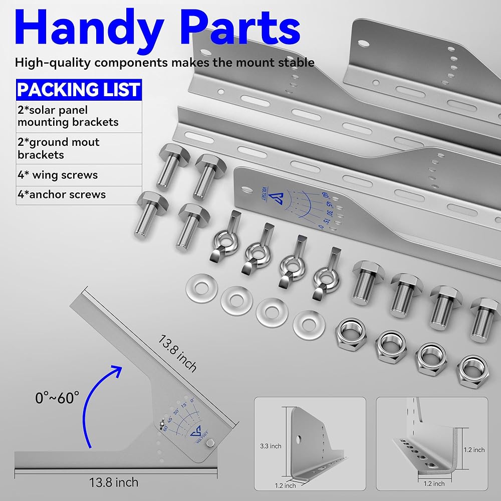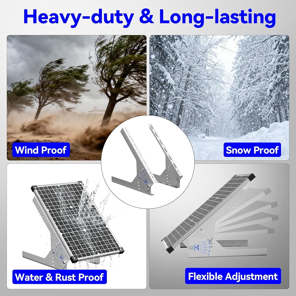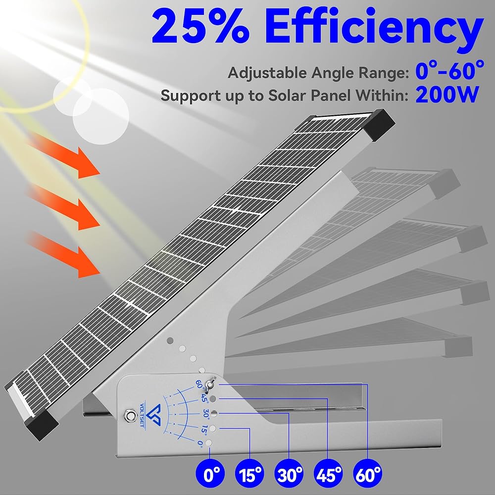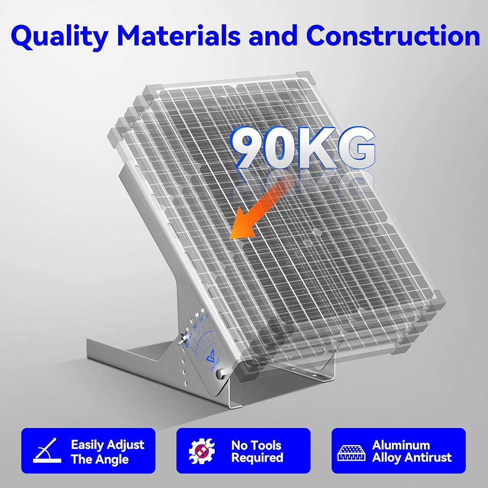 زاوية قابلة للتعديل: قم بزيادة حصاد الطاقة إلى أقصى حد مع حامل لوحة شمسية قابل للتعديل يتميز بتعديل الميل من 0 إلى 60 درجة. مثالية لأنظمة الألواح الشمسية 0-200 واط. تعزيز الكفاءة بنسبة تصل إلى 50% مع حامل الألواح الشمسية القابل للإمالة.