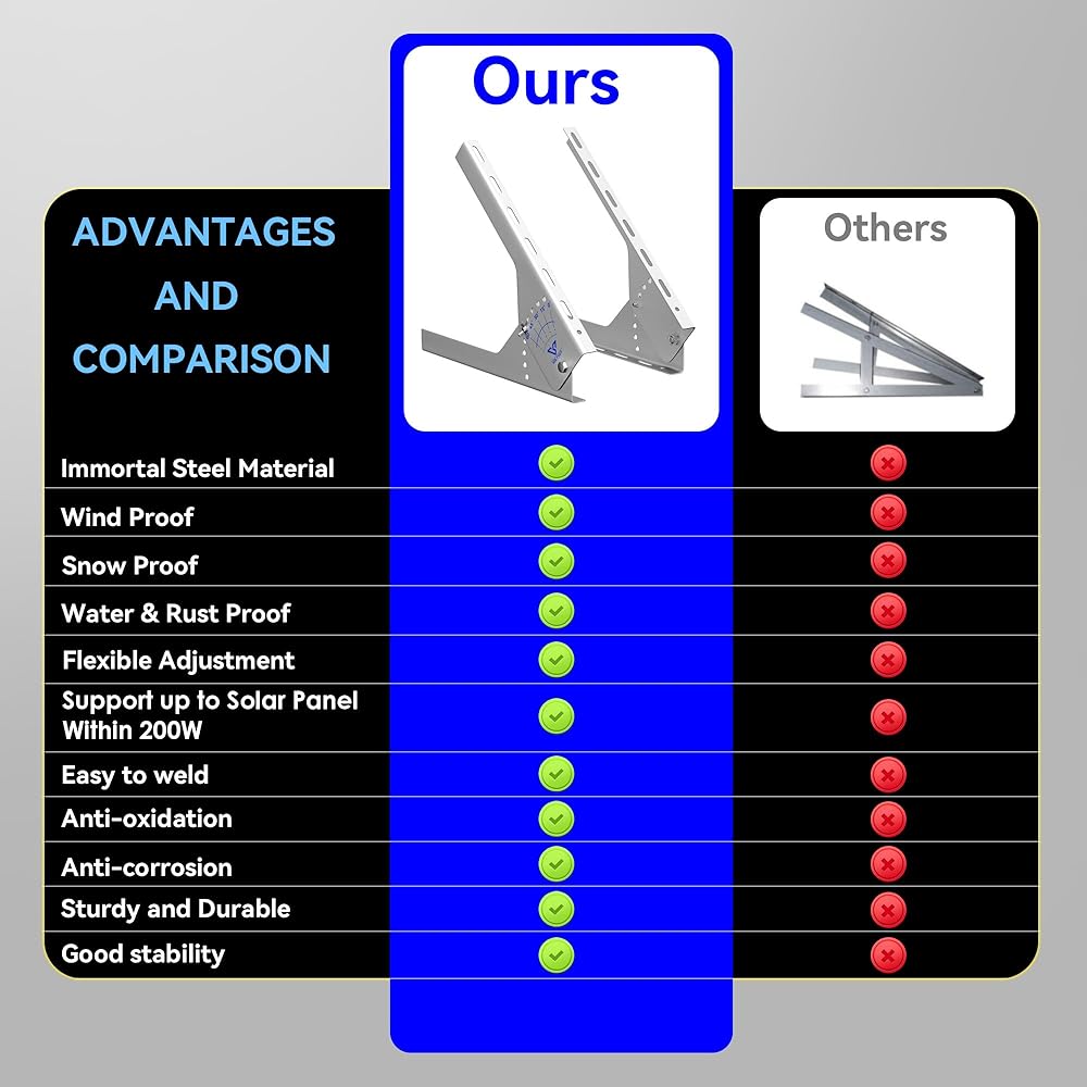 متوافق على نطاق واسع: مناسب عالميًا للوحات 0-200 واط بما في ذلك الألواح الشمسية 200 واط. دعامة لوحة سولور متوافقة مع دعامات تركيب الألواح الشمسية ومجموعة تركيب الألواح الشمسية. مثالية لحلول تركيب الطاقة الشمسية بنفسك.
