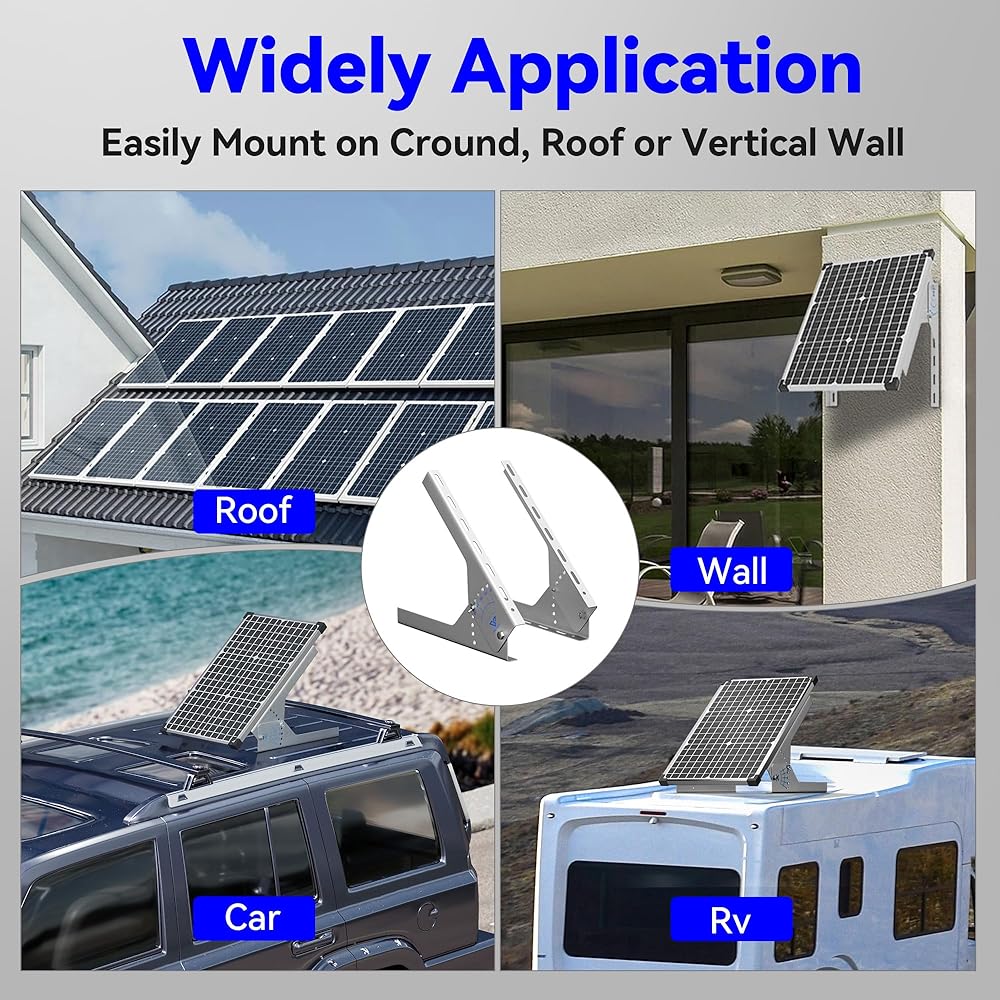 تنطبق على سيناريوهات متعددة: حامل سقف اللوحة الشمسية متعدد الاستخدامات، حامل اللوحة الشمسية RV، حامل اللوحة الشمسية على الأرض، حامل اللوحة الشمسية للسيارة، وحامل اللوحة الشمسية سقف مسطح لجميع التطبيقات. مثالية للأسطح والمركبات الترفيهية والتركيبات الأرضية.