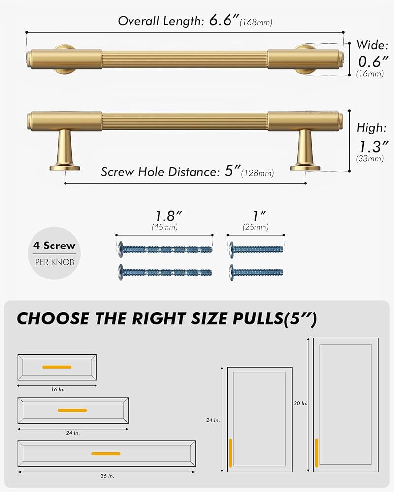 حجم أجهزة الخزانة: مراكز الفتحات (CC): 5 بوصة (128 مم)؛ الطول الإجمالي: 6.6 بوصة (168 ملم)؛ الارتفاع: 1.3 بوصة (32 مم)؛ العرض: 0.37 بوصة (9.4 مللي متر). يرجى التحقق من حجم مقبض المطبخ الذي تحتاجه بعناية قبل الشراء