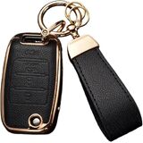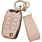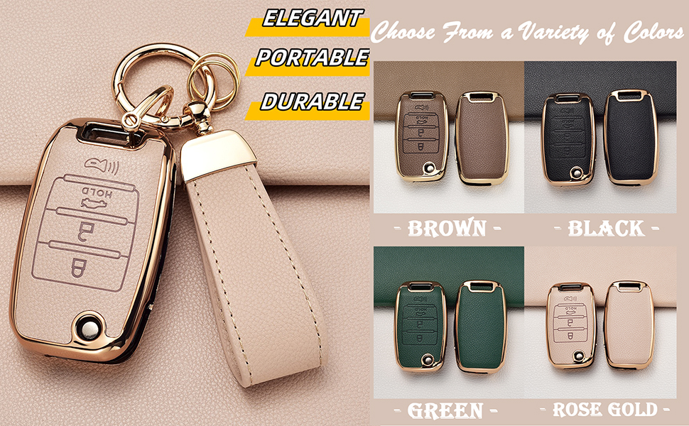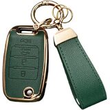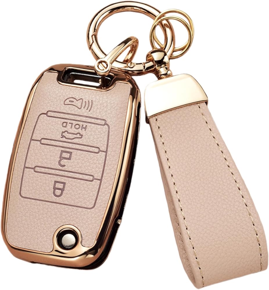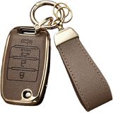 غطاء مفتاح فوب متوافق مع كيا ريو أوبتيما سول سبورتاج سورينتو كارينز 2013-2017، جلد علوي + غطاء مفتاح ناعم قابل للطي من مادة TPU مع سلسلة مفاتيح، مفتاح قلاب 4 أزرار (بني) in Kuwait