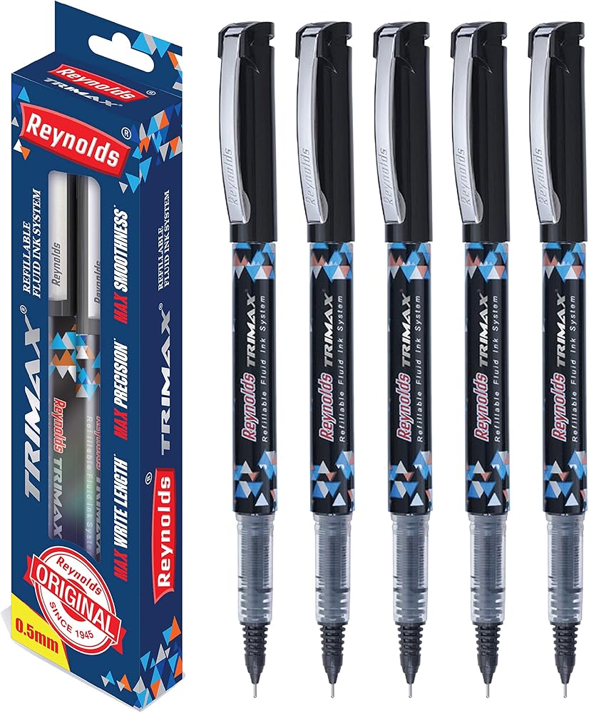 أقلام جل سائلة تريماكس 0.5 مم من رينولدز - عبوة من 5 أحبار سوداء (سفينة من الهند)