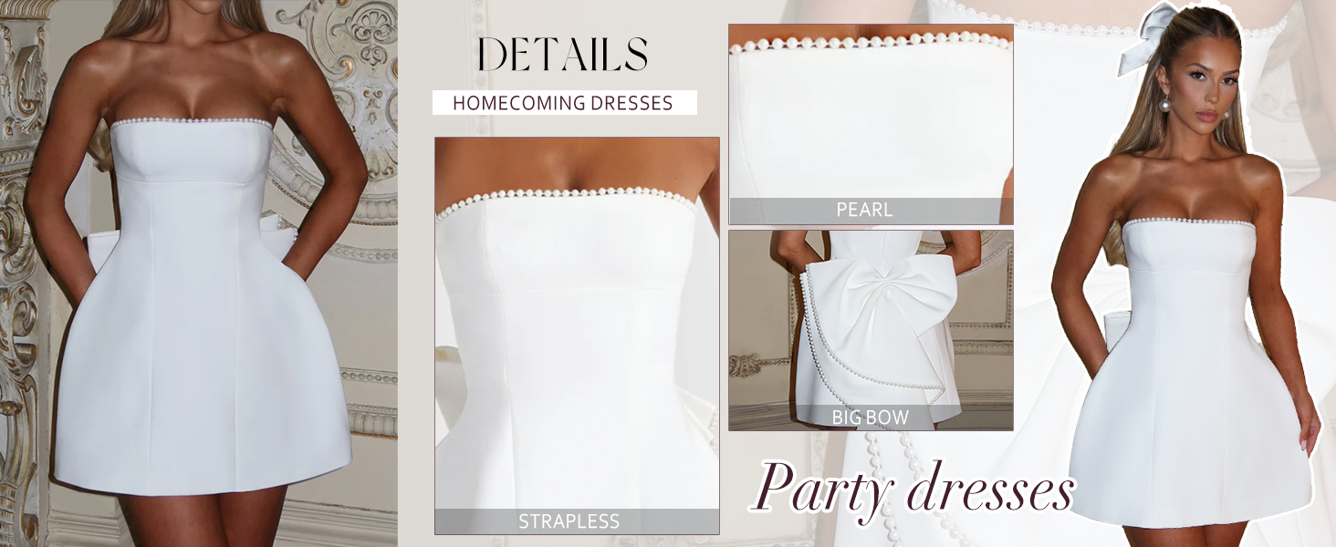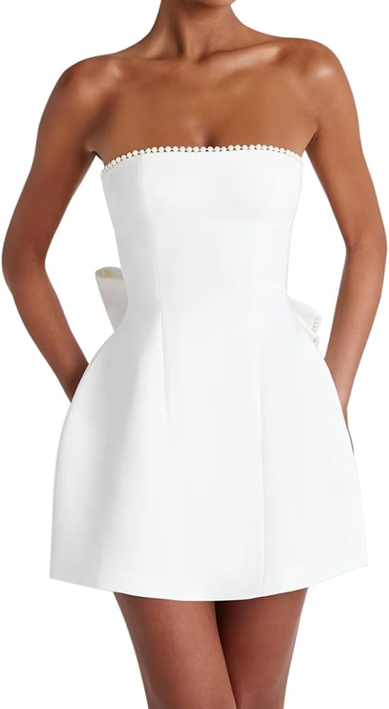 الميزات: فساتين العودة للوطن لؤلؤة الساتان 2025، فستان حفلة موسيقية قصير، فستان حفلة موسيقية مشد بدون حمالات للنساء، فستان كوكتيل صغير، فستان قصير لحفلات التخرج للمراهقين. أكثر نعومة، ومسامي، ومبطن بالكامل ومدمج في الصدرية. تصميم القوس واللؤلؤ لطيف جدًا وجميل! سوف تتلقى الكثير من الثناء على هذا اللباس.