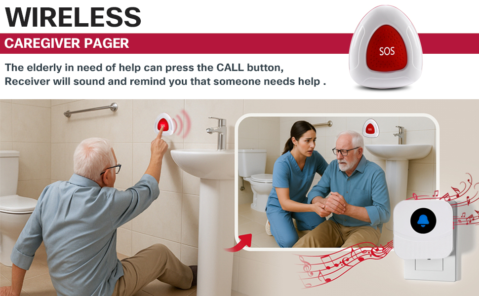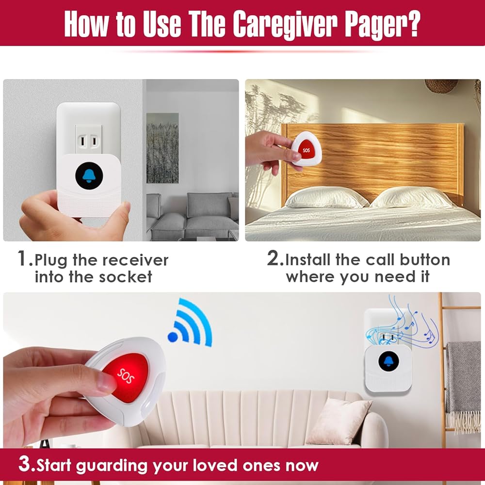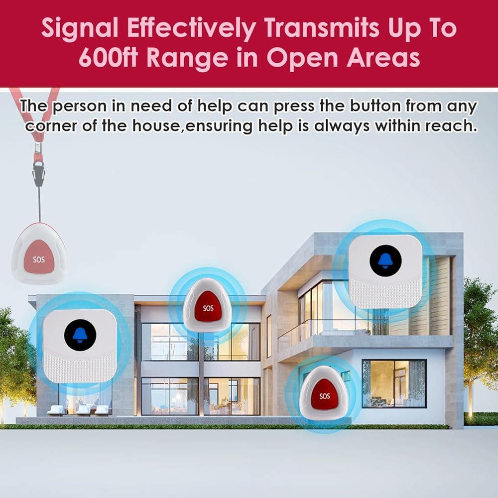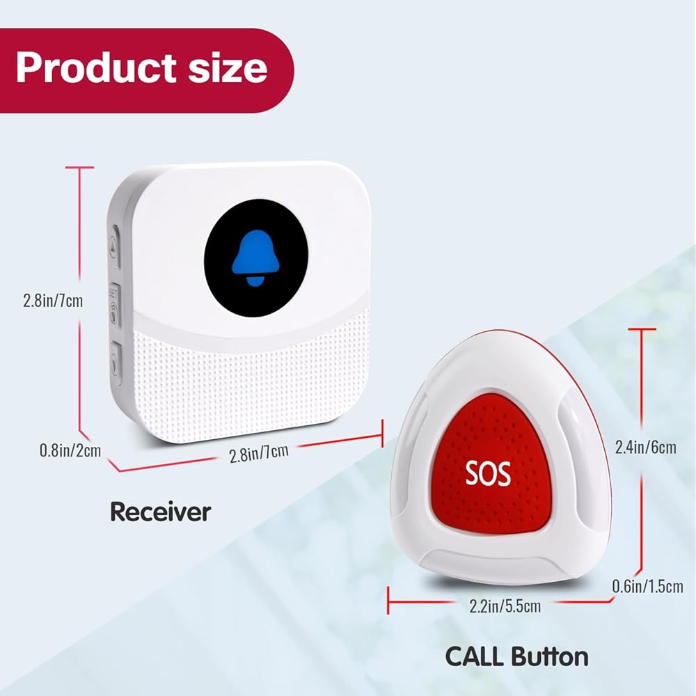 【نطاق طويل يزيد عن 500 قدم لحرية المنزل بالكامل】 استمتع بحركة وتغطية لا مثيل لها! تنتقل الإشارة اللاسلكية بشكل فعال عبر الجدران حتى 500 قدم في المناطق المفتوحة. يمكن لمقدمي الرعاية حمل جهاز الاستقبال الموصول من غرفة النوم إلى المطبخ أو الحديقة، بينما يمكن للشخص المحتاج الضغط على الزر من أي ركن من أركان المنزل، مما يضمن أن المساعدة دائمًا في متناول اليد.