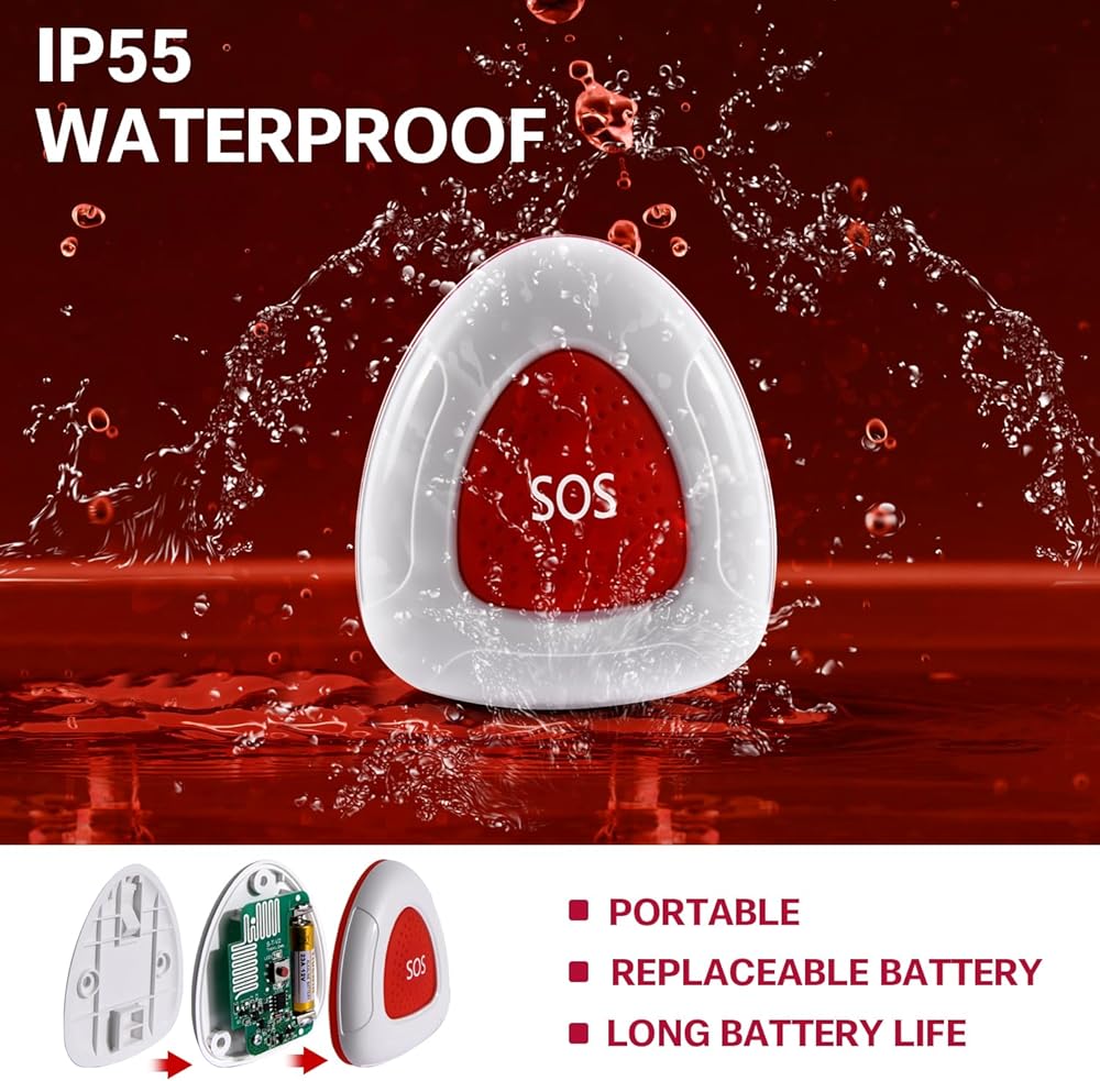 【أزرار اتصال مقاومة للماء للاستخدام الآمن في الحمام】 تم تصميم أزرار اتصال SOS خصيصًا لتكون مقاومة للماء، مما يجعلها آمنة ومثالية للاستخدام في المناطق عالية المخاطر والمعرضة للرطوبة مثل الحمام أو الدش. (يرجى ملاحظة: أجهزة الاستقبال مخصصة للاستخدام الداخلي وليست مقاومة للماء. ويجب توصيلها بمنفذ طاقة داخلي جاف.)