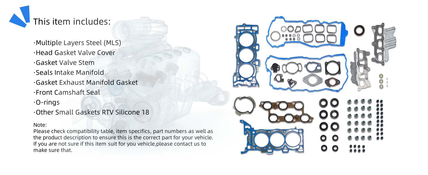 مجموعة حشية الرأس متوافقة مع 2009-2016 Buick Enclave 3.6l، 2009-2016 شيفروليه ترافيرس 3.6l، 2009-2016 Gmc Acadia 3.6l، 2009-2010 Saturn Outlook 3.6l HS26376PT-5 ES72274 (بدون مسمار) in Kuwait