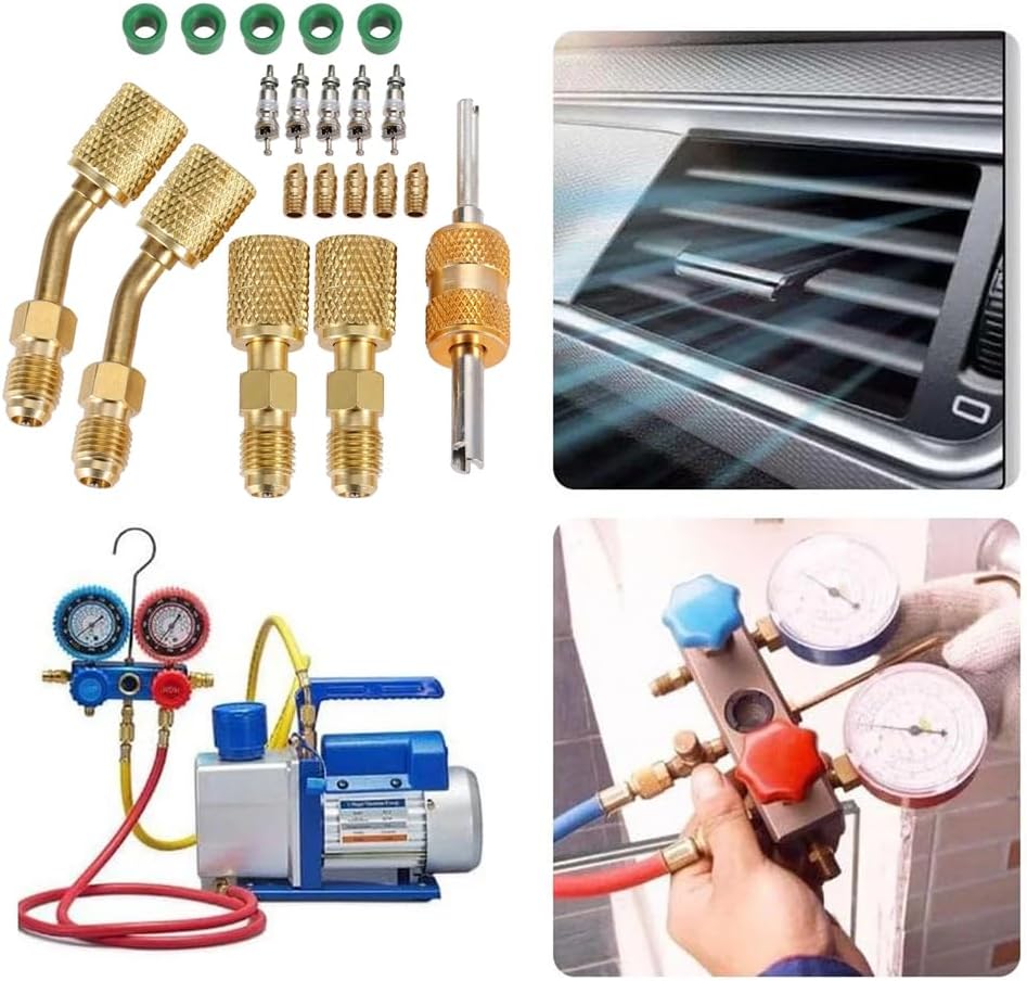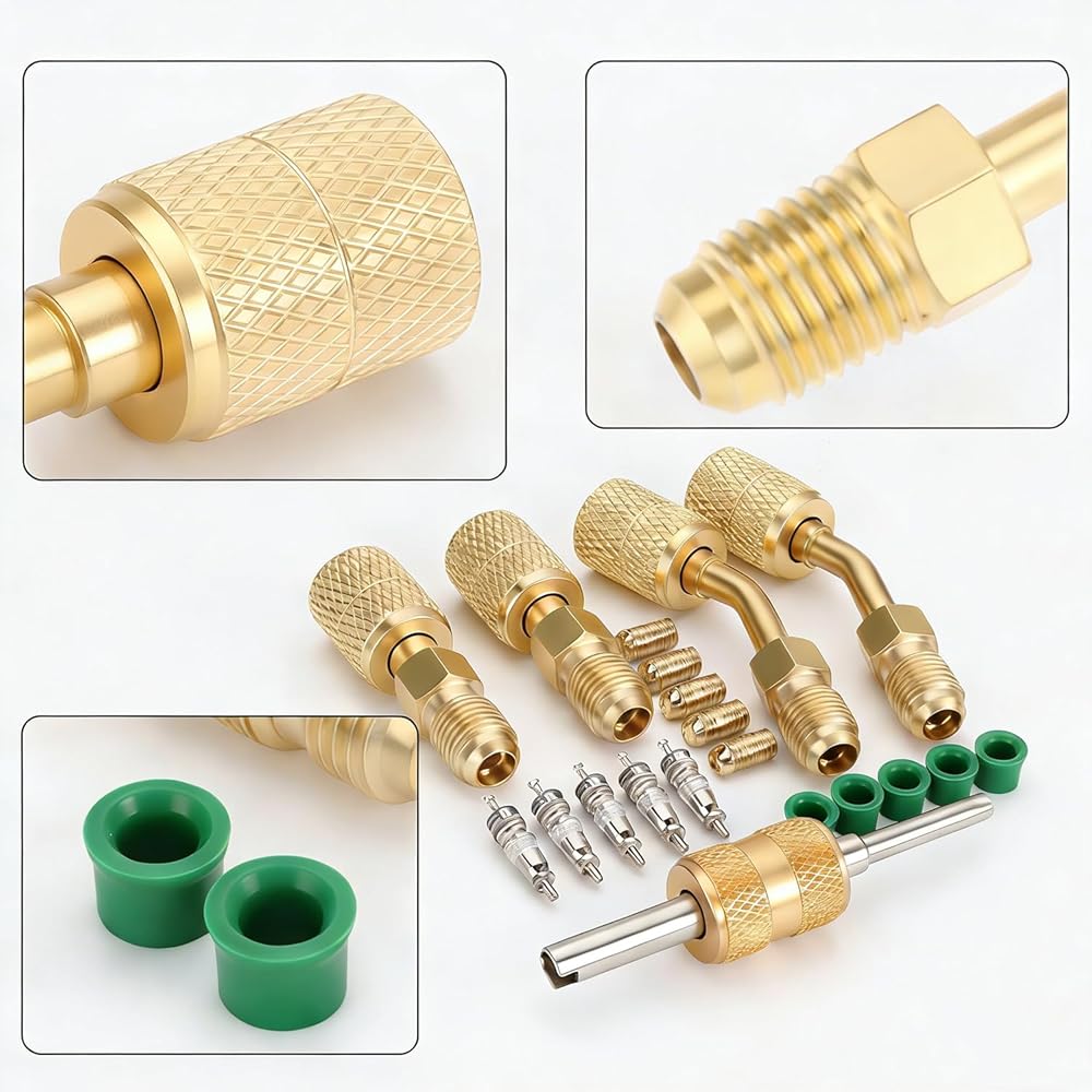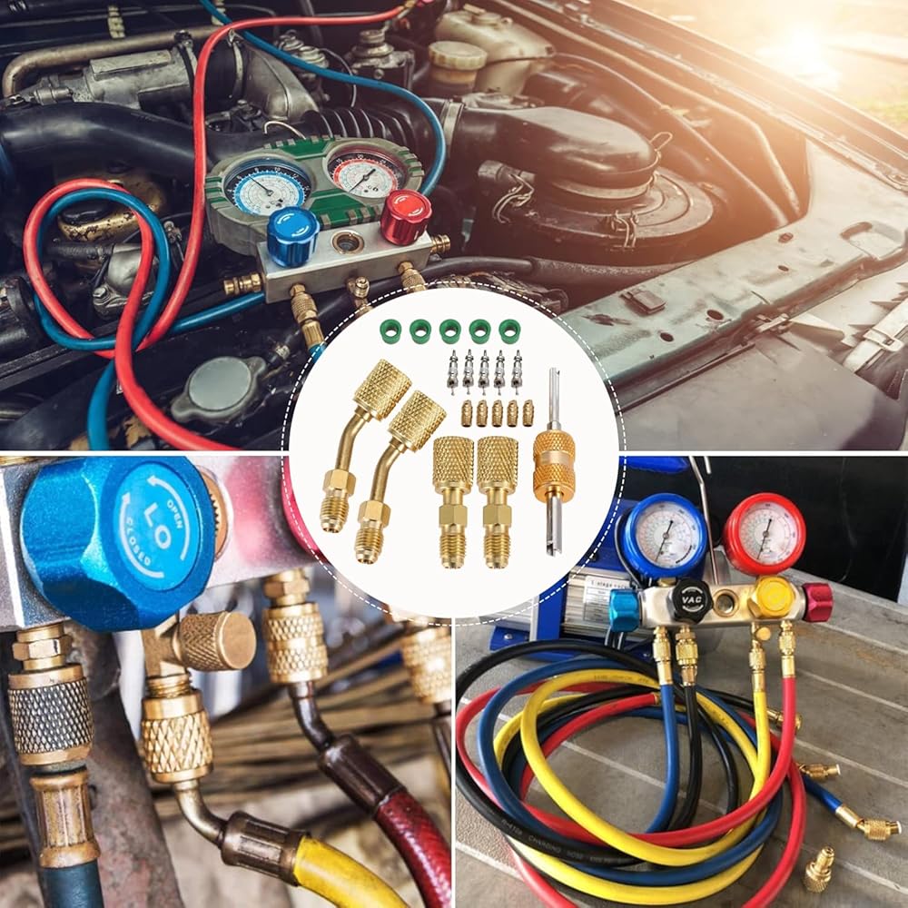 • Premium Quality: Engineered for exceptional sealing performance. The adapter features precision-machined brass fittings and includes high-quality R134a hose rubber gaskets to ensure a tight, leak-free connection every time.
