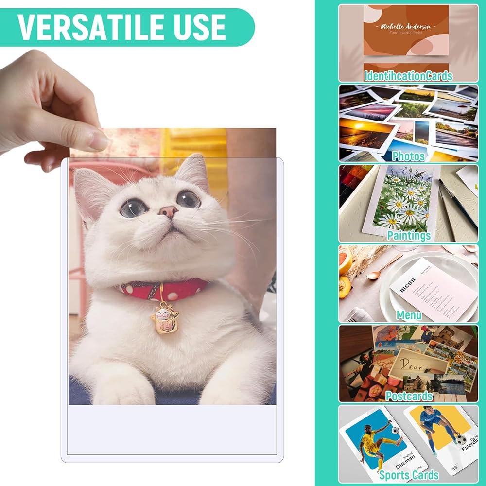 Wide Application: These 5x7 photo sleeves can assist you in storing and organizing important items, perfect for storing trading cards and photos, but also ideal for stamps, tickets, and other small collectibles, meeting a variety of storage needs, suitable for use in offices, homes, schools, libraries, and more. Help people protect important or memorable cards or photos for longer.