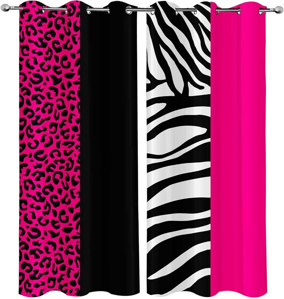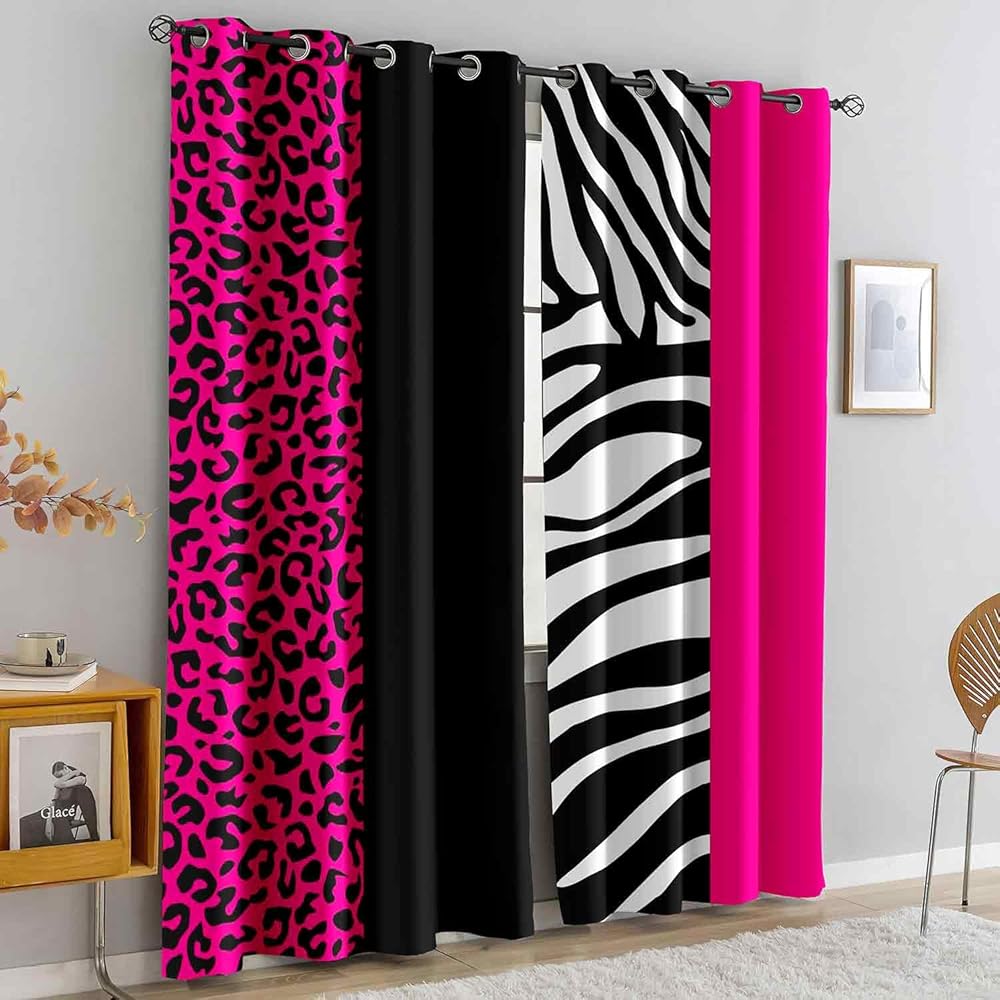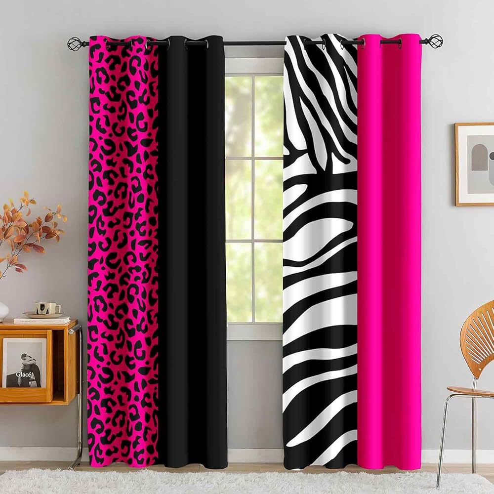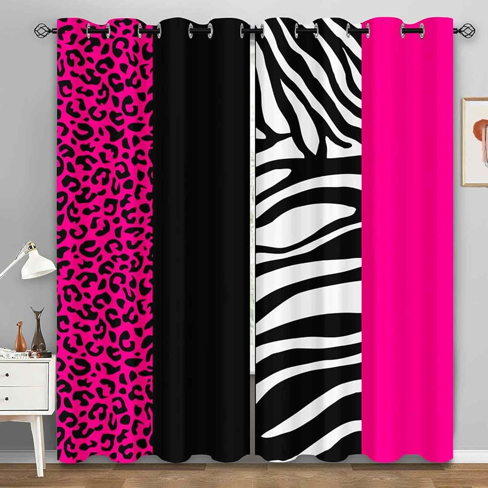 LUVIVIHOME ليوبارد ستائر التعتيم لغرفة النوم 84 بوصة طويلة 2 لوحات، الوردي الساخن الأسود والأبيض زيبرا الحيوان الجلد الفهد طباعة ستائر عيد الحب لغرفة المعيشة جروميت نافذة الستائر، 52Wx84L