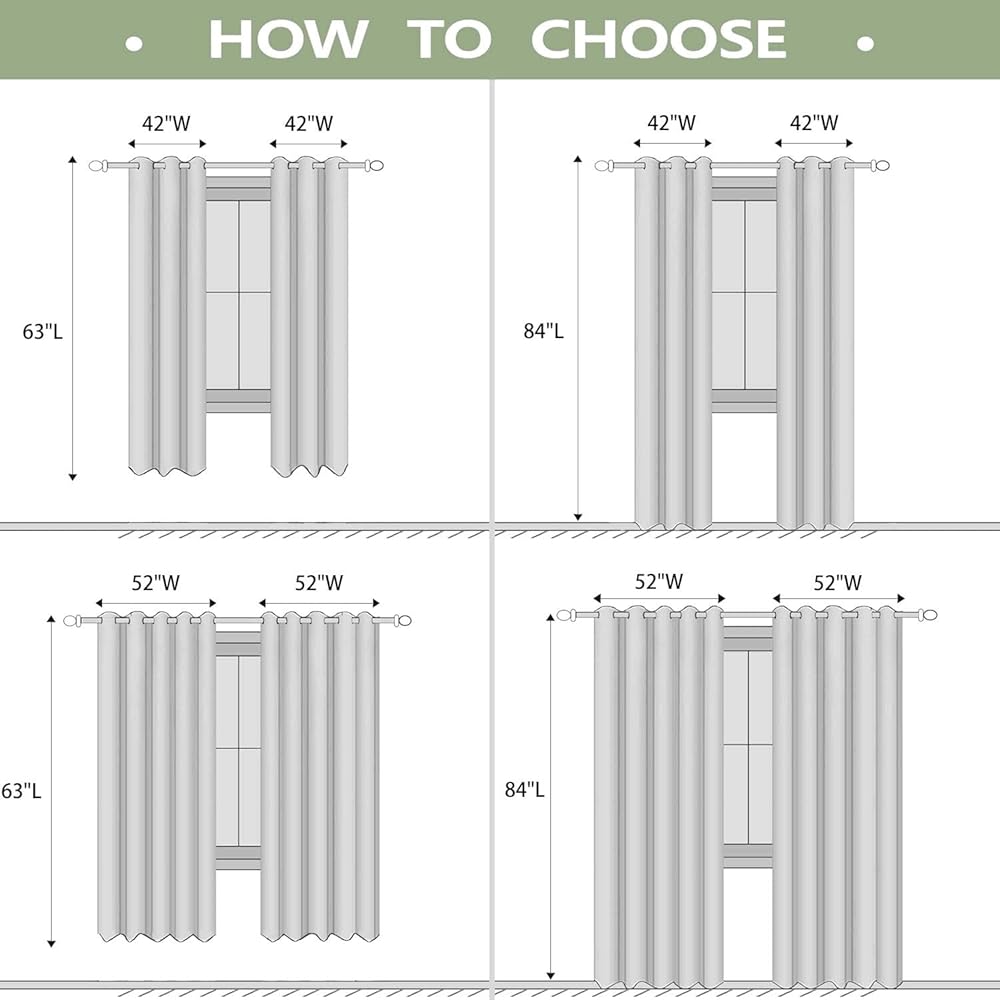 • 【2PCS INCLUDED】 Total of 2 blackout curtain panels per set. Each curtain is 52 inches wide by 84 inches long and has 8 stainless steel grommets (1.6 inches inside diameter) at the top for easy installation and sliding.
