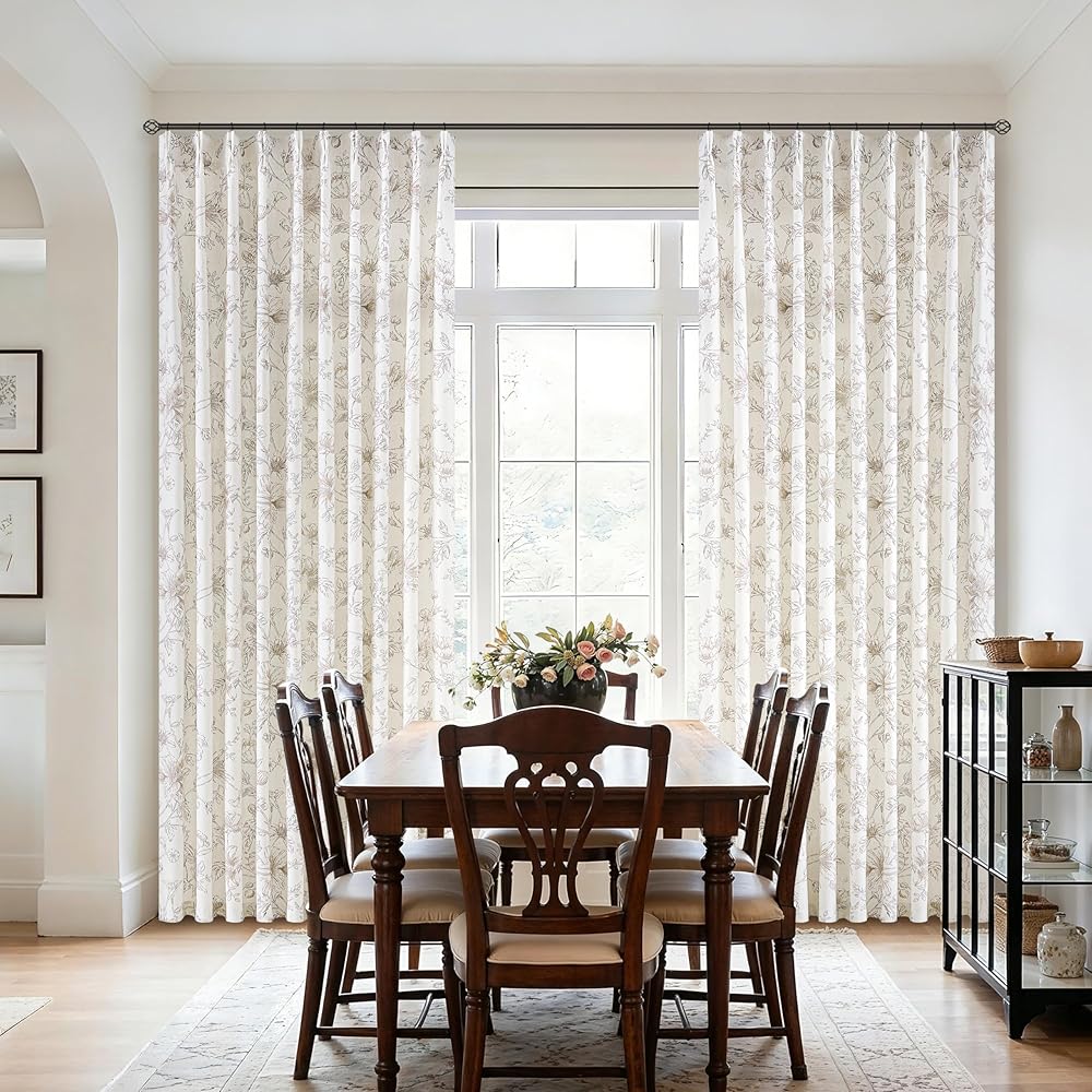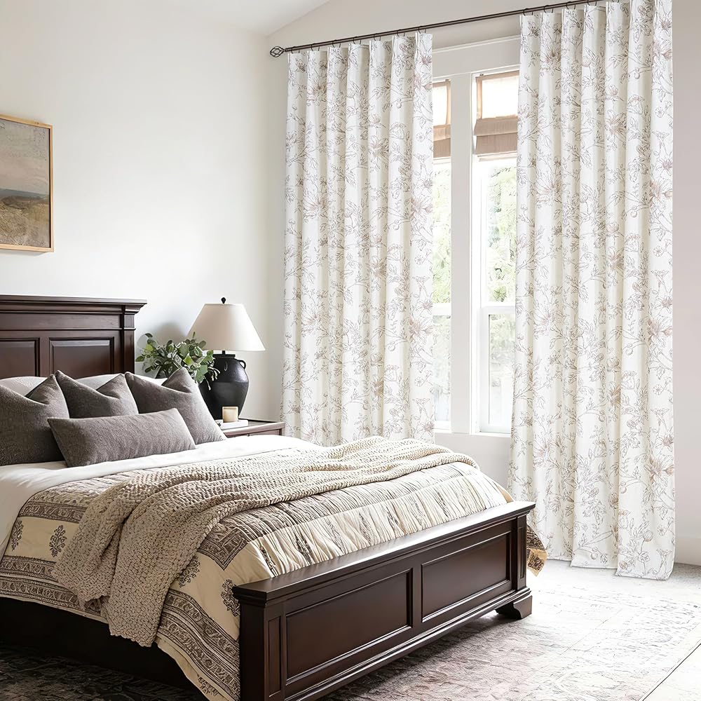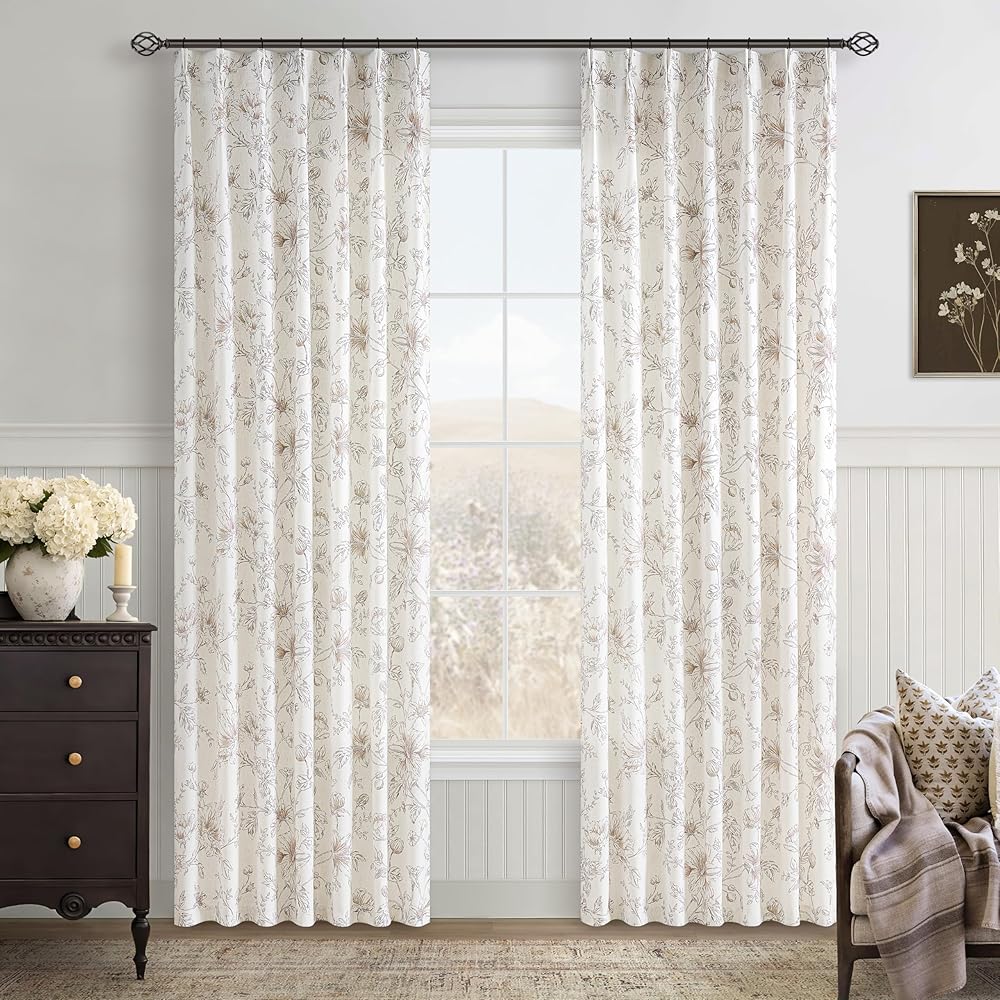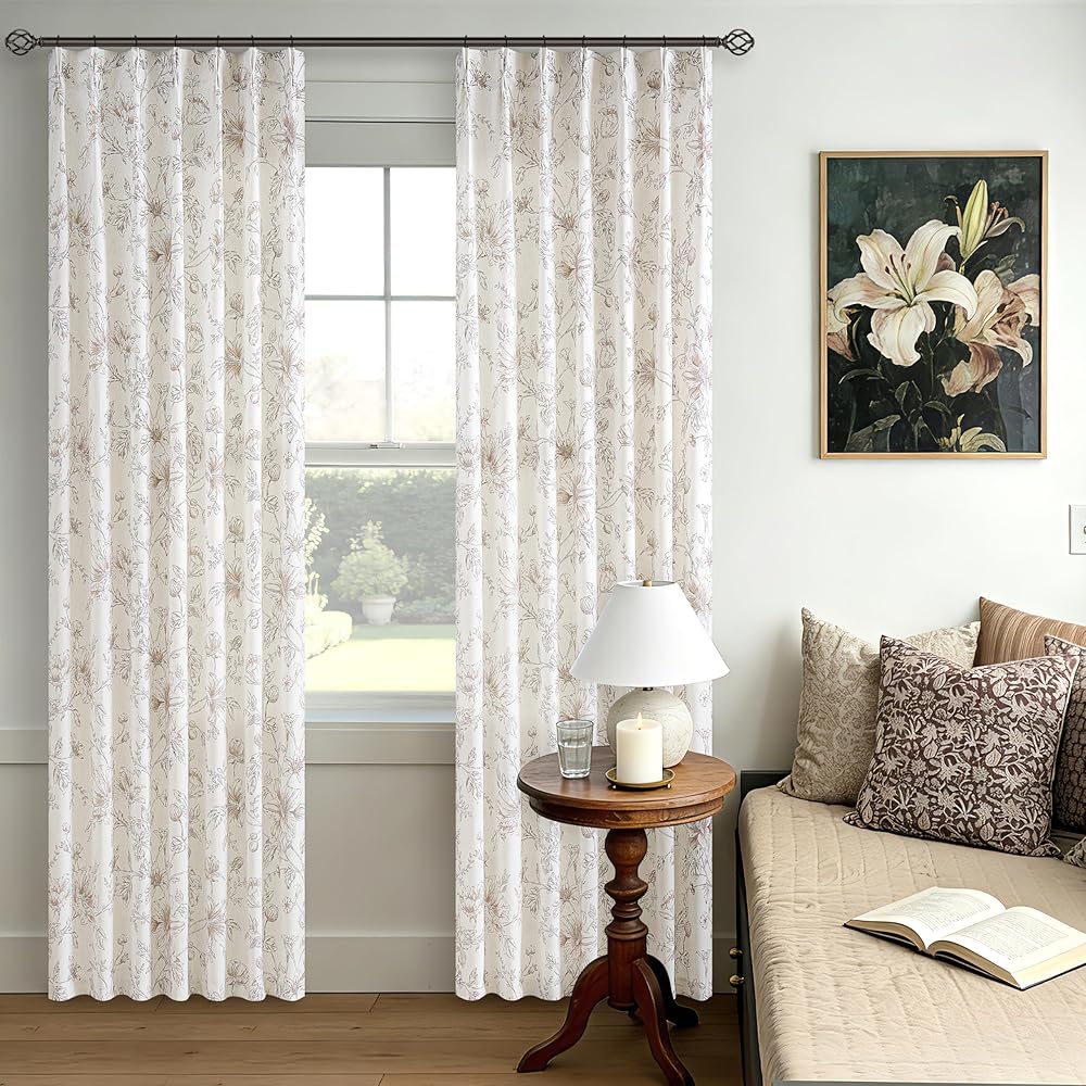 تصميم الأزهار الرقيقة: تتميز ستائرنا الزهرية الكتانية بتصميم بسيط ولكنه متطور يضفي أجواءً رائعة على منزلك. تم تزيين قماش الكتان برسومات نباتية بنية فاتحة تصور الزهور والبراعم وأوراق الشجر المتفتحة. النمط المعقد يكمل ديكور المزرعة أو الريفي أو الأنيق أو الحديث أو البوهيمي مع إضافة العمق