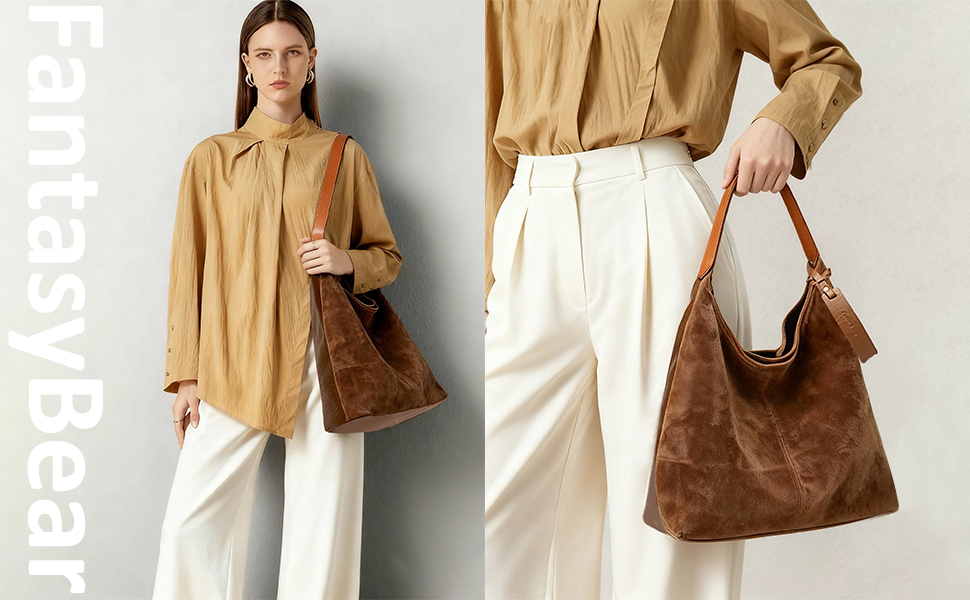 【مادة من الجلد السويدي الصناعي】الجزء الأمامي لحقيبة اليد المصنوعة من الجلد السويدي مصنوع من جلد سويدي صناعي ناعم ومتين، والجزء الخلفي مصنوع من الجلد الناعم. يمكن استخدام كلا الجانبين، ويأتي بأسلوبين للاستخدام.