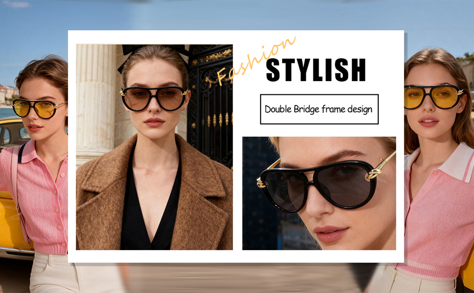 【ديكور مثالي】تعد هذه النظارات الشمسية الأنيقة الخيار الأمثل للأنشطة الخارجية مثل التقاط صور السيلفي والتسوق والقيادة والسفر، وهي مناسبة كإكسسوار عصري وارتداء يومي طوال العام. مع الألوان الأنثوية، هذه النظارات الشمسية مثالية يمكنك تغييرها مع ملابسك.