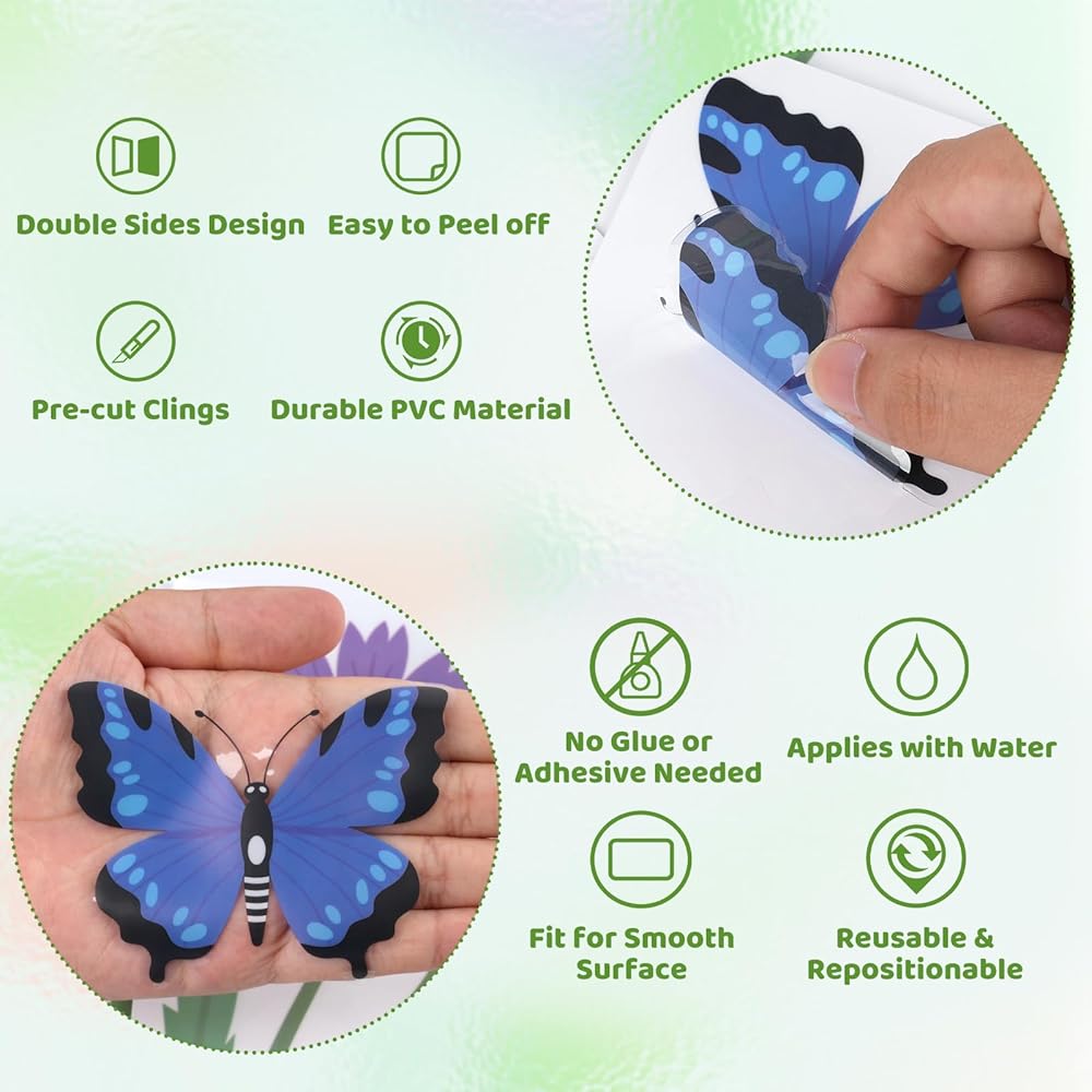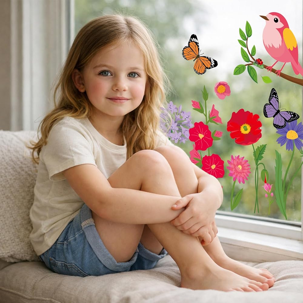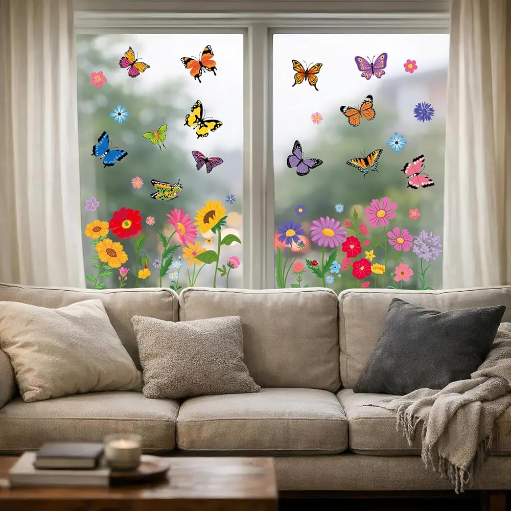 ملصقات النوافذ الزنبركية: 93 قطعة في 8 أوراق. تتميز بالفراشات والنحل والطيور والزهور، مما يجعلها مثالية لإضافة لمسة ربيعية مبهجة