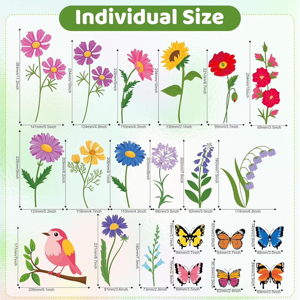 93 قطعة من ملصقات النوافذ الزنبركية من AOWDIAO - سهلة التركيب والإزالة لملصقات النوافذ على شكل زهرة الفينيل للنوافذ الزجاجية والمكاتب وديكورات المنزل الربيعية