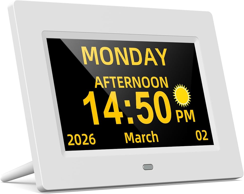 **✅ Extra-Large, High-Contrast Display** – Features a clear, non-abbreviated calendar with full day, date, month, and year, ensuring effortless reading for users with low vision or dementia, day or night.