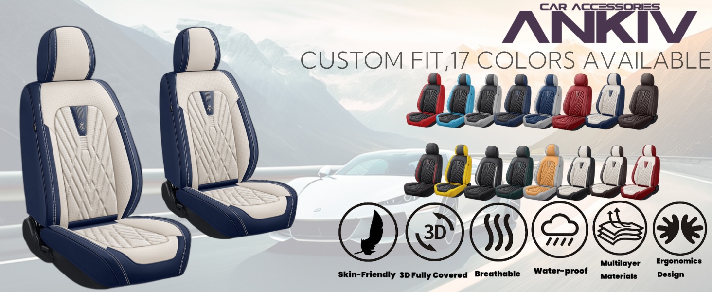 مواد فاخرة: أغطية مقاعد السيارة الخاصة بنا مصنوعة من جلد البولي يوريثان عالي الجودة والرايون الكثيف، مما يضمن شعورًا مريحًا وأنيقًا وجيد التهوية. لا تضيف هذه المواد إلى المتانة فحسب، بل تعزز أيضًا المظهر البصري لأغطية المقاعد، مما يميزها عن غيرها في السوق.