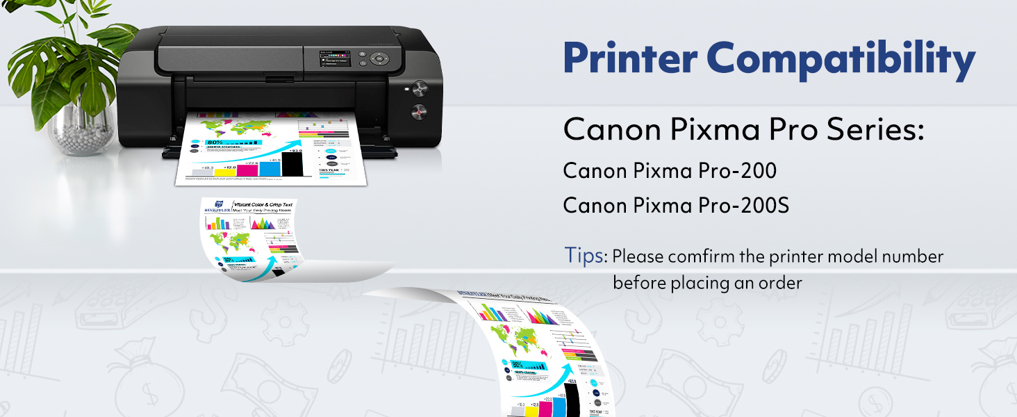 متوافقة بنسبة 100% مع الطابعات: لطابعة Canon pixma pro 200، pixma pro-200، pixma pro 200s، pixma pro-200s اللاسلكية الاحترافية النافثة للحبر
