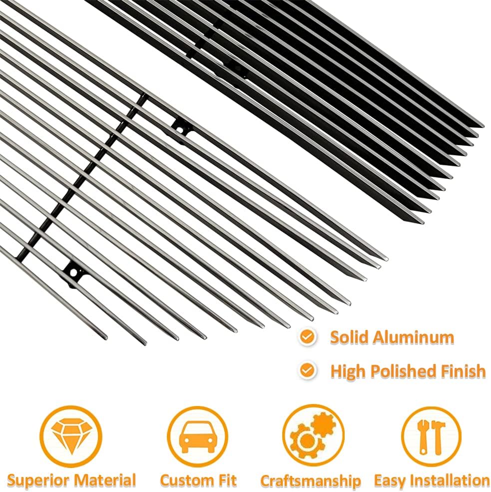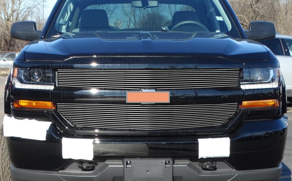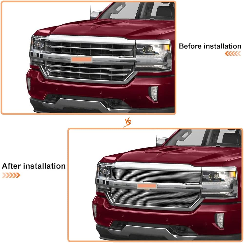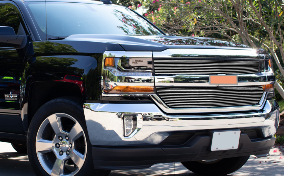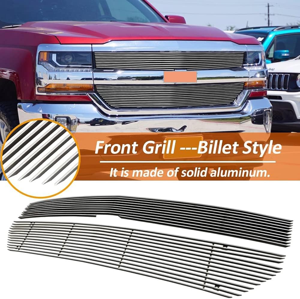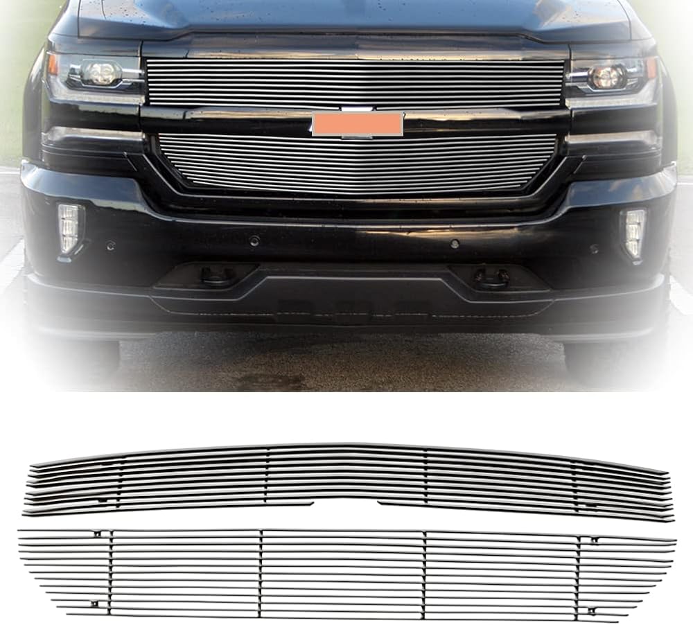 مجموعة إدراج الشبكة الأمامية المصقولة المتوافقة مع 2016-2018 Chevy Silverado 1500 (16 17 18 Silverado 1500) و2019 Silverado 1500 LD من الألومنيوم الرئيسي العلوي للشواية على النمط