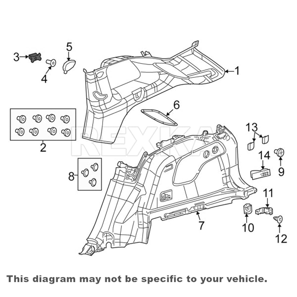 Other Names: Lift Gate Trim Clip, Scuff Plate Clip, Upper Quarter Trim Retainer, Rear Trunk Trim Clip, Quarter Panel Trim Panel Clip, Rear Body Panel Trim Panel Clip, Clip,Lower Quarter Trim Retainer