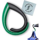 أمان مرتفع مع خطافات حقيبة بتصميم حائز على براءة اختراع: حافظ على حقيبة اليد أو حقيبة الظهر أو حقيبة اليد الخاصة بك مرفوعة من الأرضيات والسوائل المنسكبة والأماكن المزدحمة مع Embrace - شماعة حديثة على شكل دمعة مصممة لحماية أغراضك الأساسية بأناقة هادئة. مثالية للمقاهي والمطاعم وطاولات المكاتب أو التجمعات. تم تصميمه وحمايته بعناية من خلال التصميم الدولي وبراءات الاختراع، وهو إكسسوار محسن يحول التعامل اليومي مع الحقائب إلى أعمال منظمة وسهلة وأنيقة.