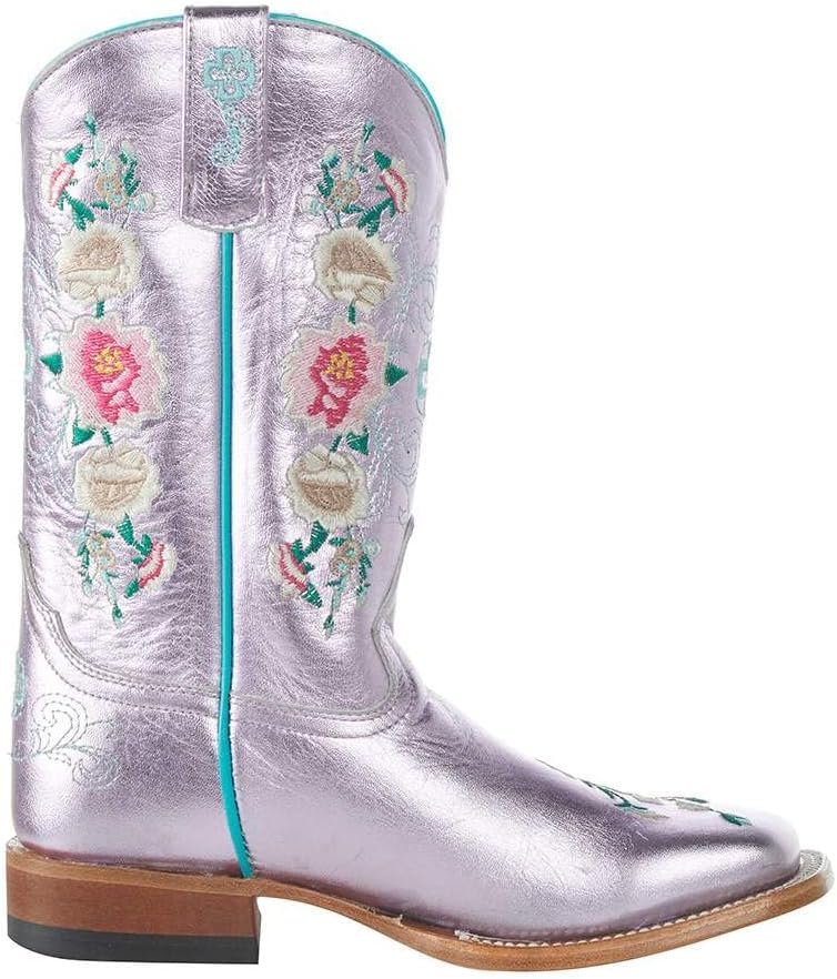 Pink Metallic Top andamp; VampFloral EmbroiderySquare ToeLeather ConstructionWalking HeelLeather LinedPull TabsDouble Stitch WeltLeather OutsoleMK92709These Kid's Macie Bean Pink Metallic Rose Garden Cowgirl Boot appeal to the girly side in your little cowgirl. The metallic finish and pretty flowers offer a feminine vintage feel, while the square toe and leather outsole is durable and practical. Perfect boot for your little Cowgirl!Named after Anderson Bean's grandmother, Macie Bean boots have become a favorite among cowgirls. Macie Bean boots are hand crafted in Leon, Mexico with all leather construction. They are great ladies' boots that have eye appeal, offer tremendous level of comfort, and are wonderful for casual wear.