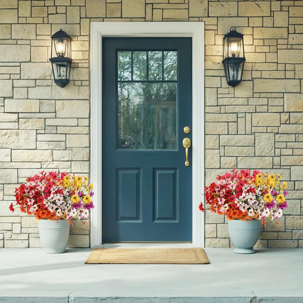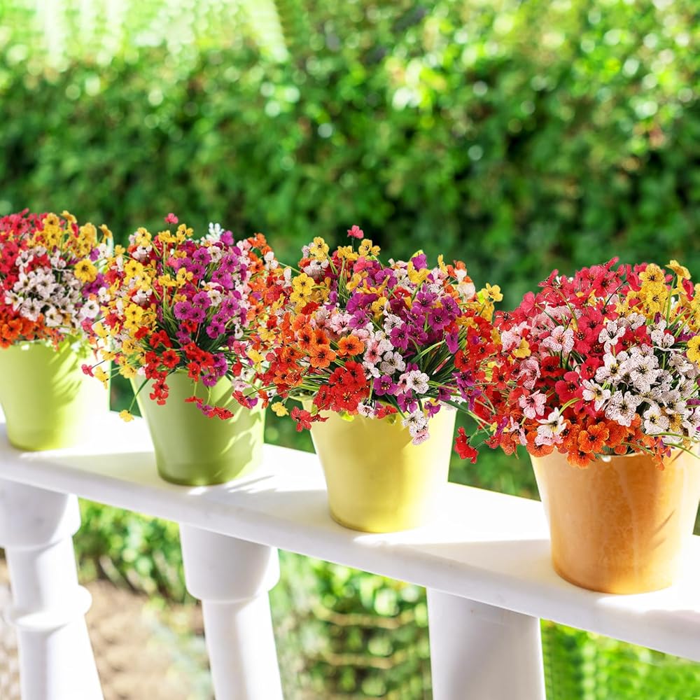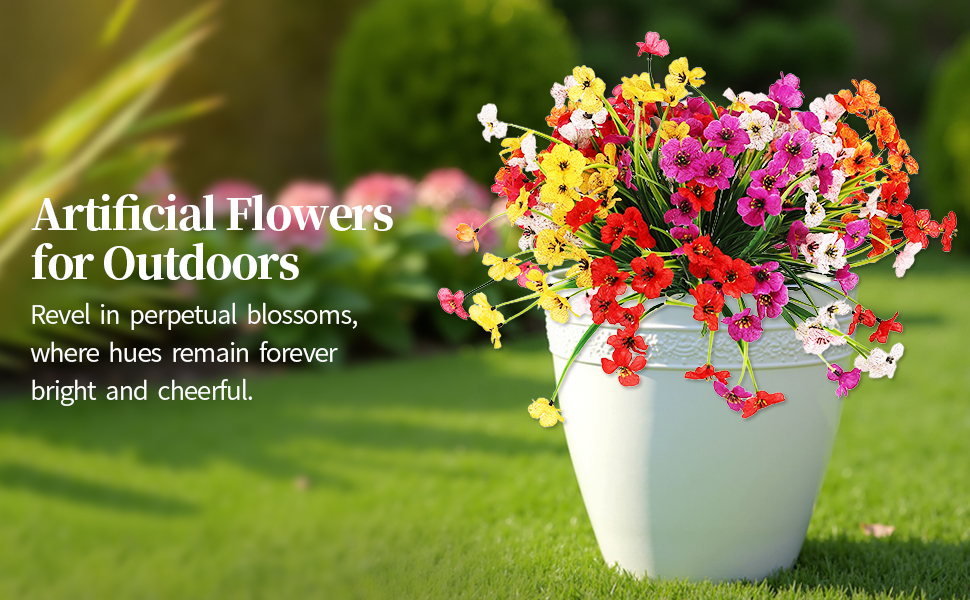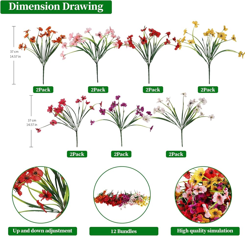 زهور صناعية نابضة بالحياة: تتضمن مجموعة الزهور الاصطناعية المكونة من 14 حزمة للأماكن الخارجية 7 أنماط بألوان مختلفة؛ سواء كنت ترغب في خلق جو رومانسي أو نمط جديد، يمكن للزهور المزيفة أن تلبي احتياجاتك بسهولة