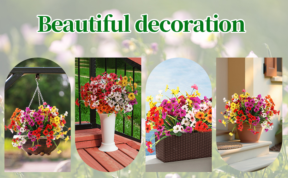 ديكور على نطاق واسع: تضيف هذه الزهور الاصطناعية المخصصة للأماكن الخارجية السحر والدفء إلى الشرفة الأمامية والممر والحديقة والمزيد؛ كما أنها زخارف متعددة الوظائف لمختلف المناسبات، مثل التجمعات وحفلات الزفاف والمناسبات الخاصة الأخرى