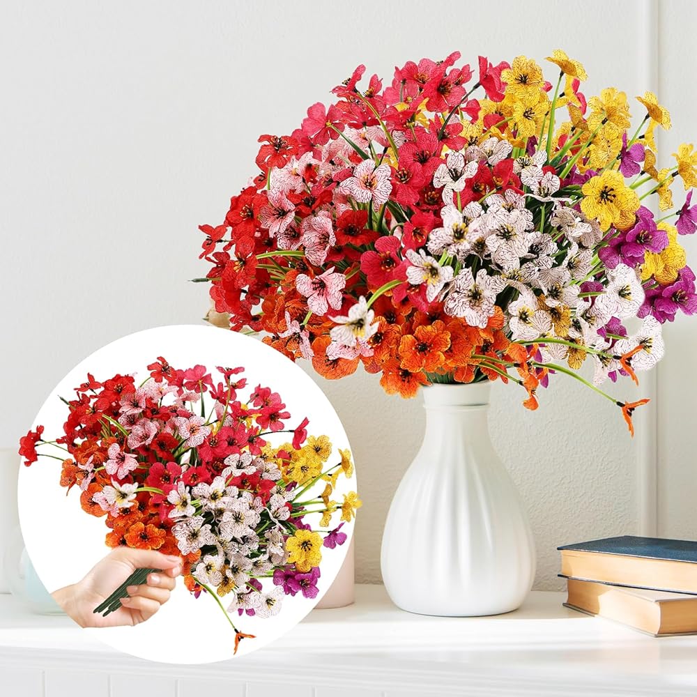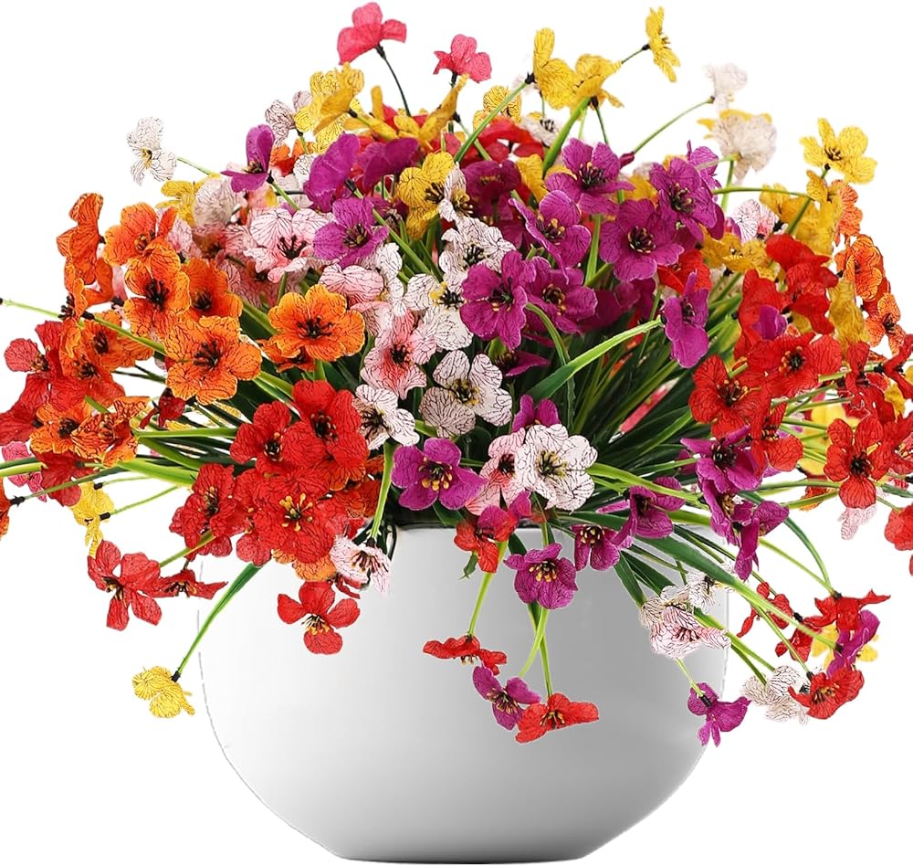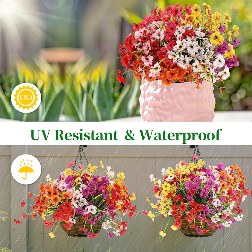 14 حزمة من الزهور الصناعية للديكور في الهواء الطلق، زهور وهمية متعددة الألوان ونباتات بلاستيكية بنفسجية صناعية مقاومة للأشعة فوق البنفسجية للربيع والصيف والحديقة ونافذة صندوق المكتب وطاولة المطبخ وديكور المنزل