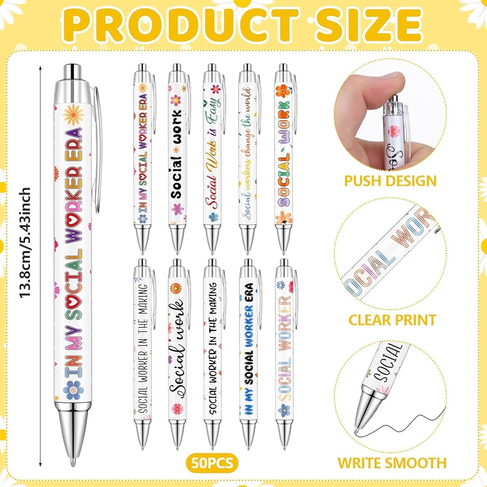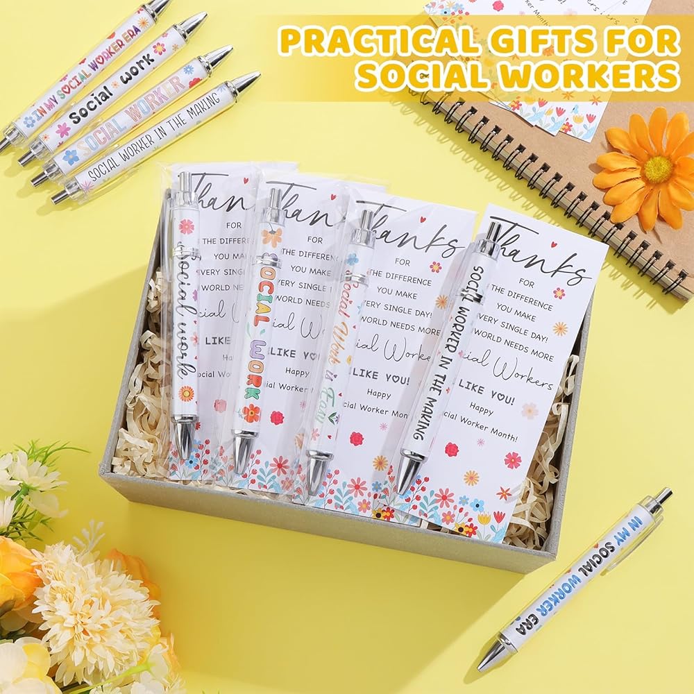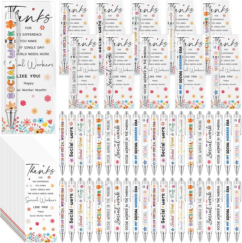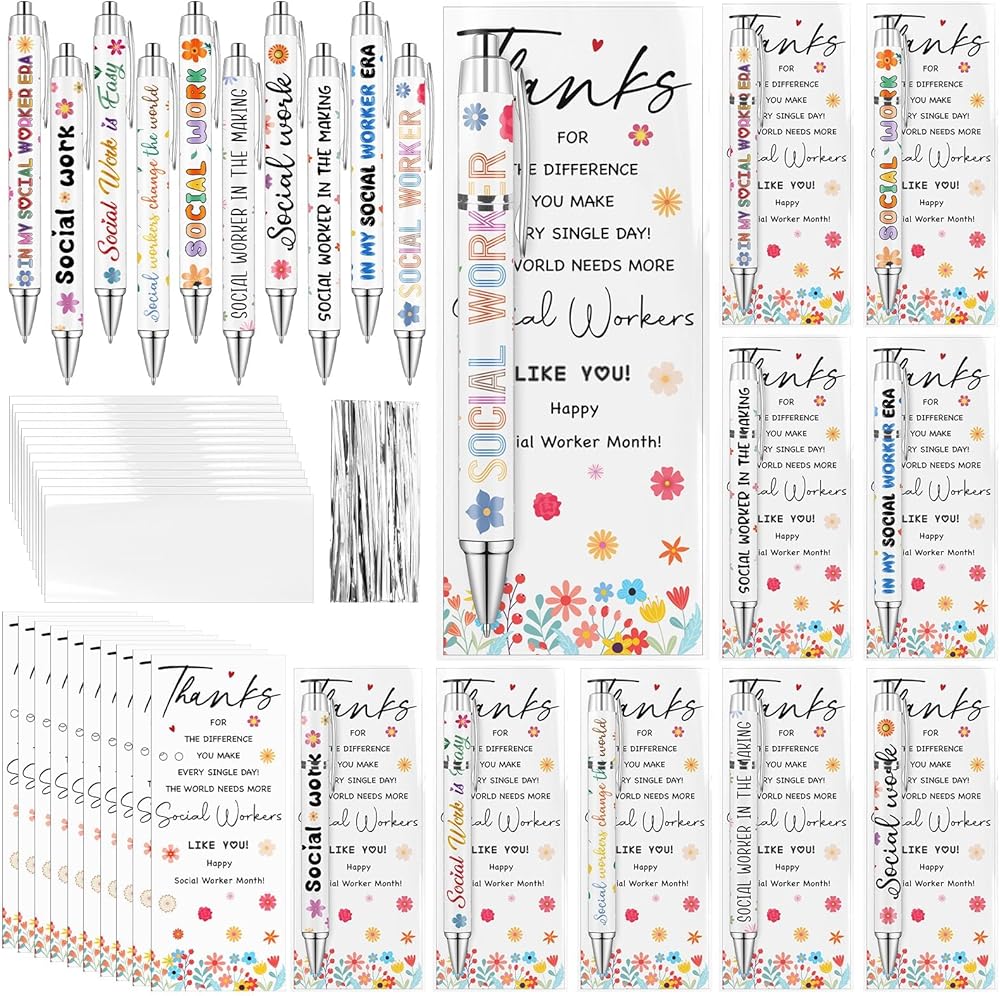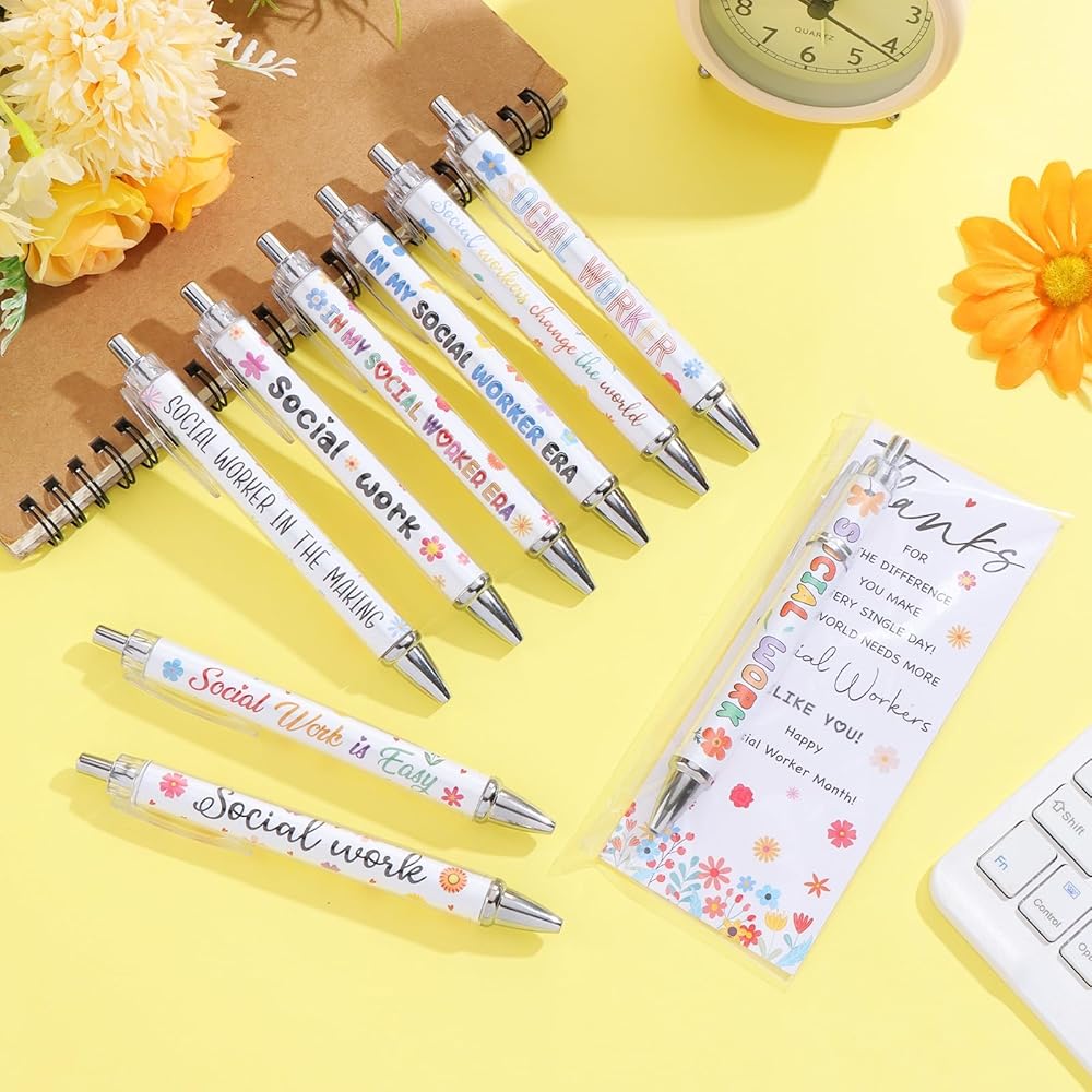 • Generously Packaged for Gratitude: this package includes 50 funny social workers pens in 10 styles, 5 for each, 50 social worker appreciation cards; The set also comes with 50 cable ties and 50 OPP bags; This plenty supply ensures you always have a token of gratitude on hand to gift social workers for their remarkable service; Enough quantity will meet your use needs, making it the ideal gift for social workers