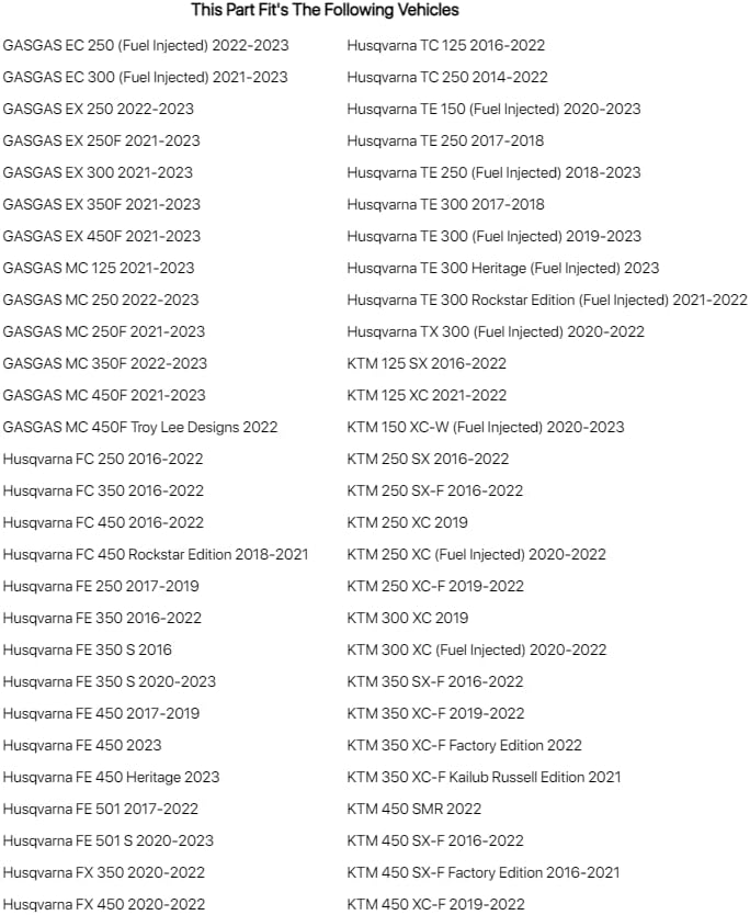 Also Compatible with GasGas EC 250/EX 250/MC 250/350F 2022-2023/EC 300/EX 300/250F/350F/450F/MC 125/250F/450F 2021-2023